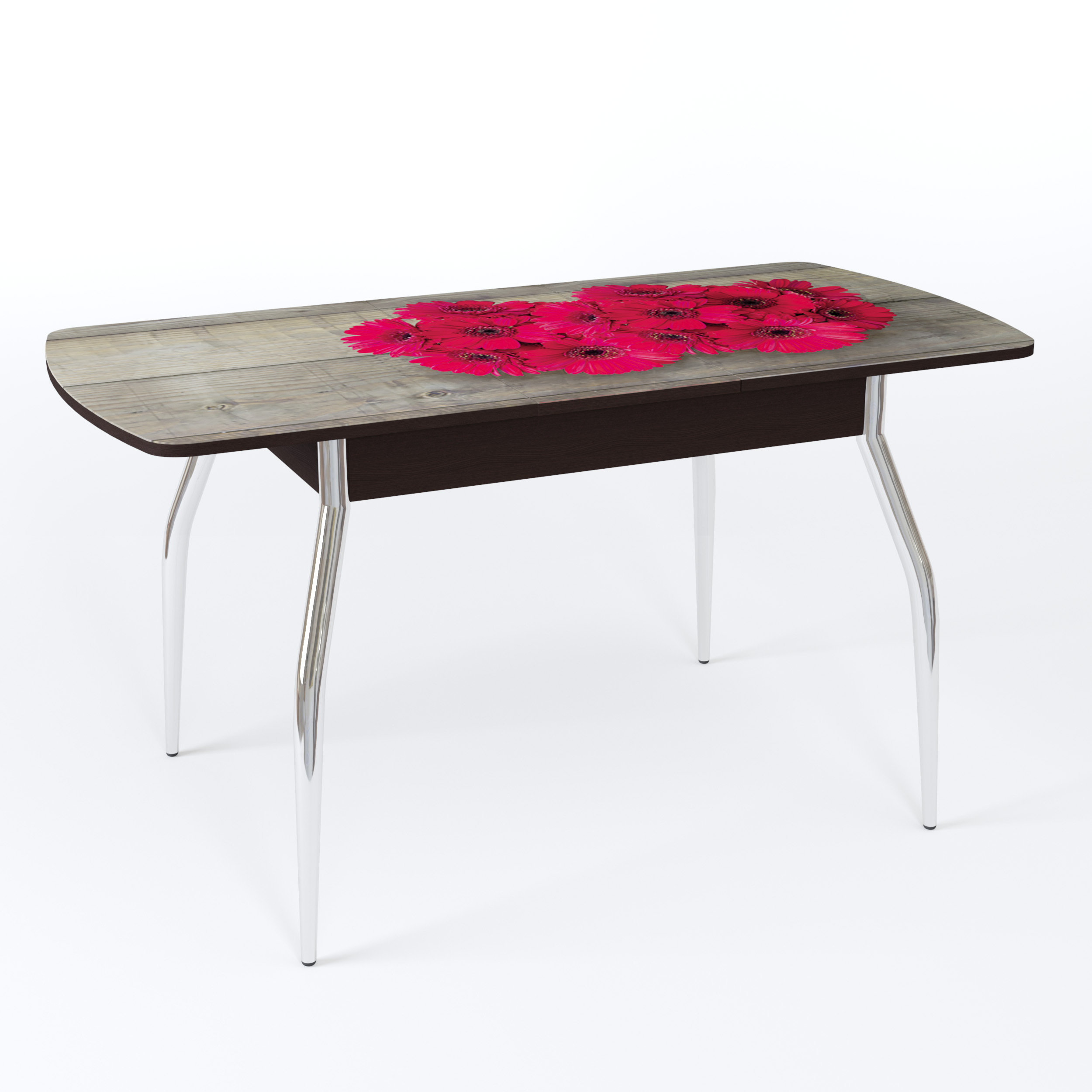 Стол обеденный Раздвижной Чикаго, столешница полуовал, фотопечать, ноги гальваника, 110х68х75 см
