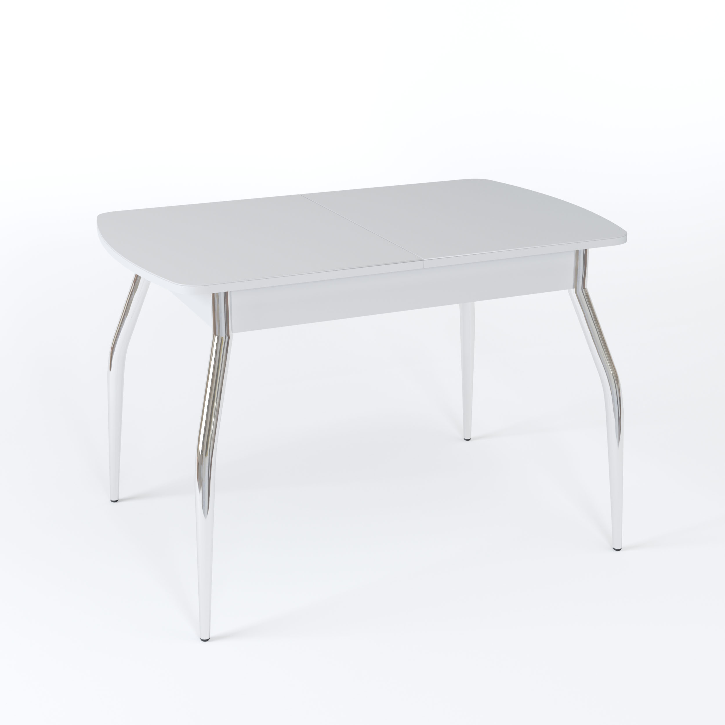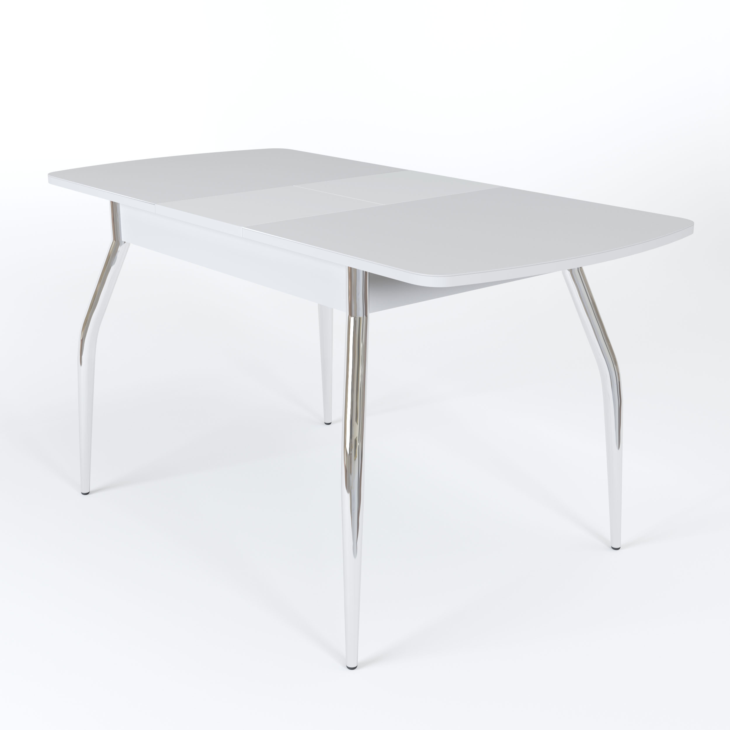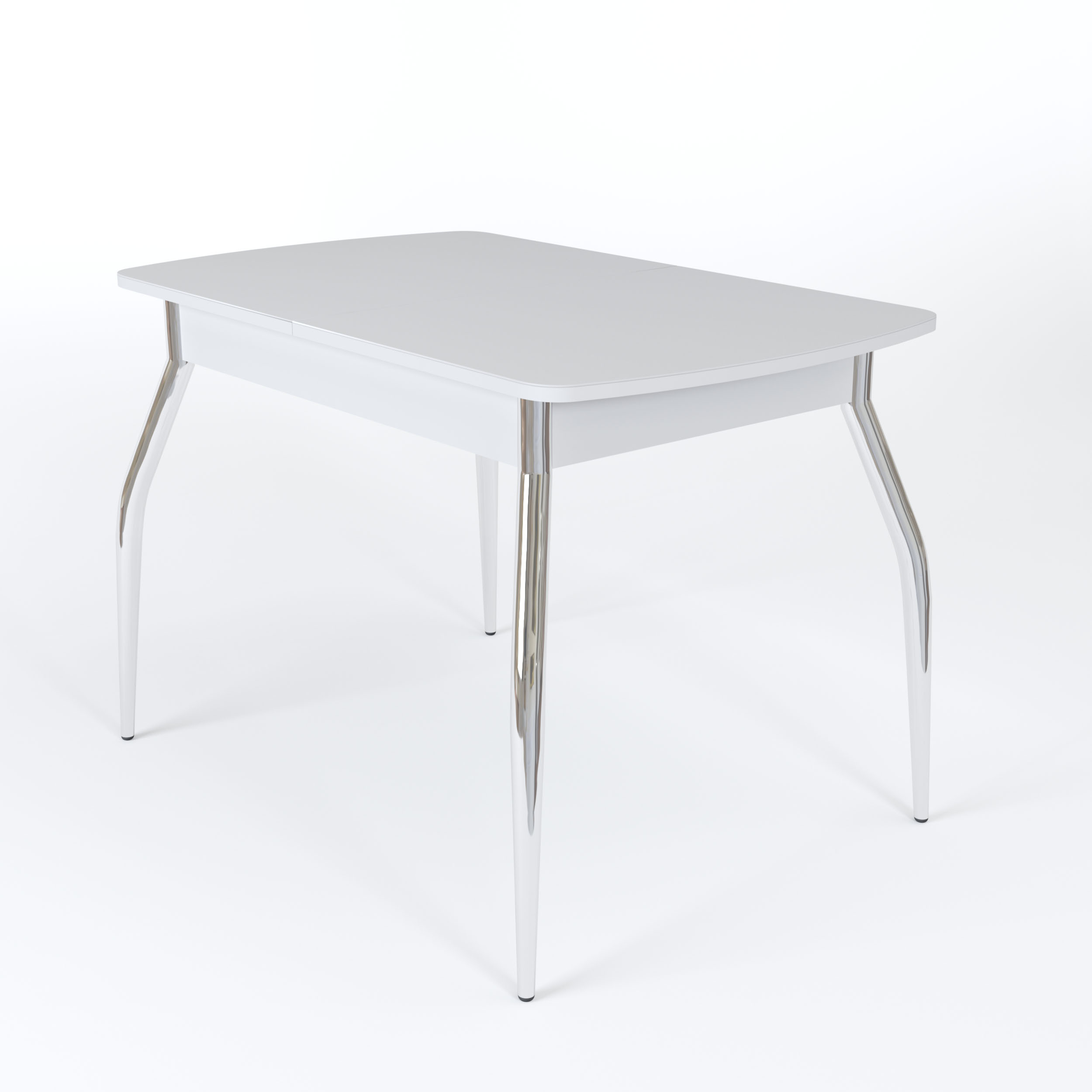 Стол обеденный Раздвижной Аспен, столешница со стеклом (белое, глянц.), ноги гальваника, 90х60х75 см