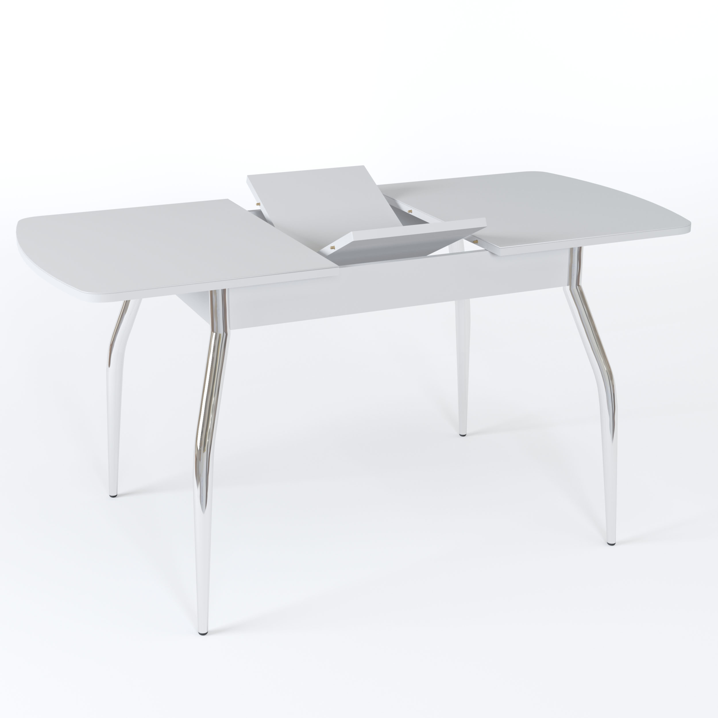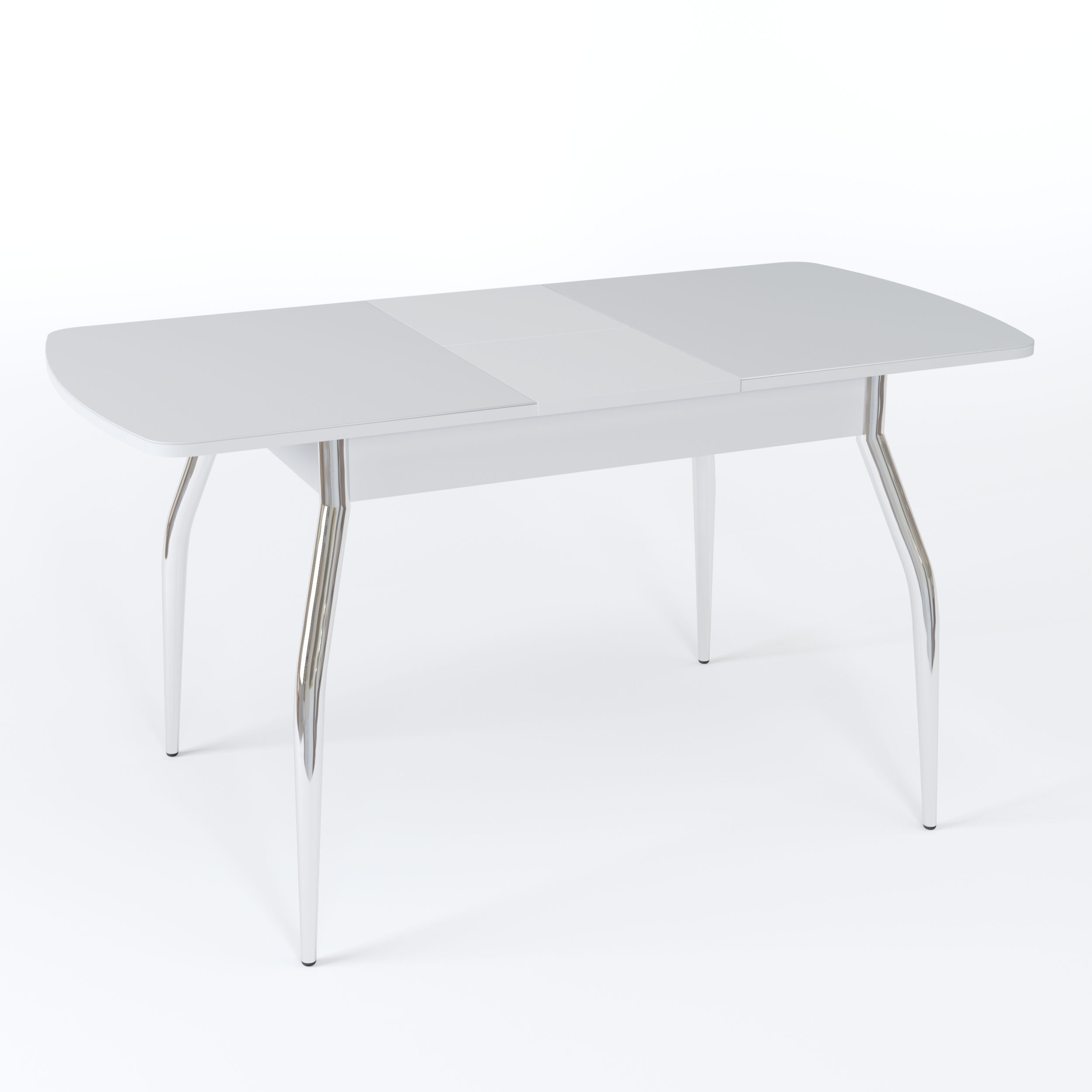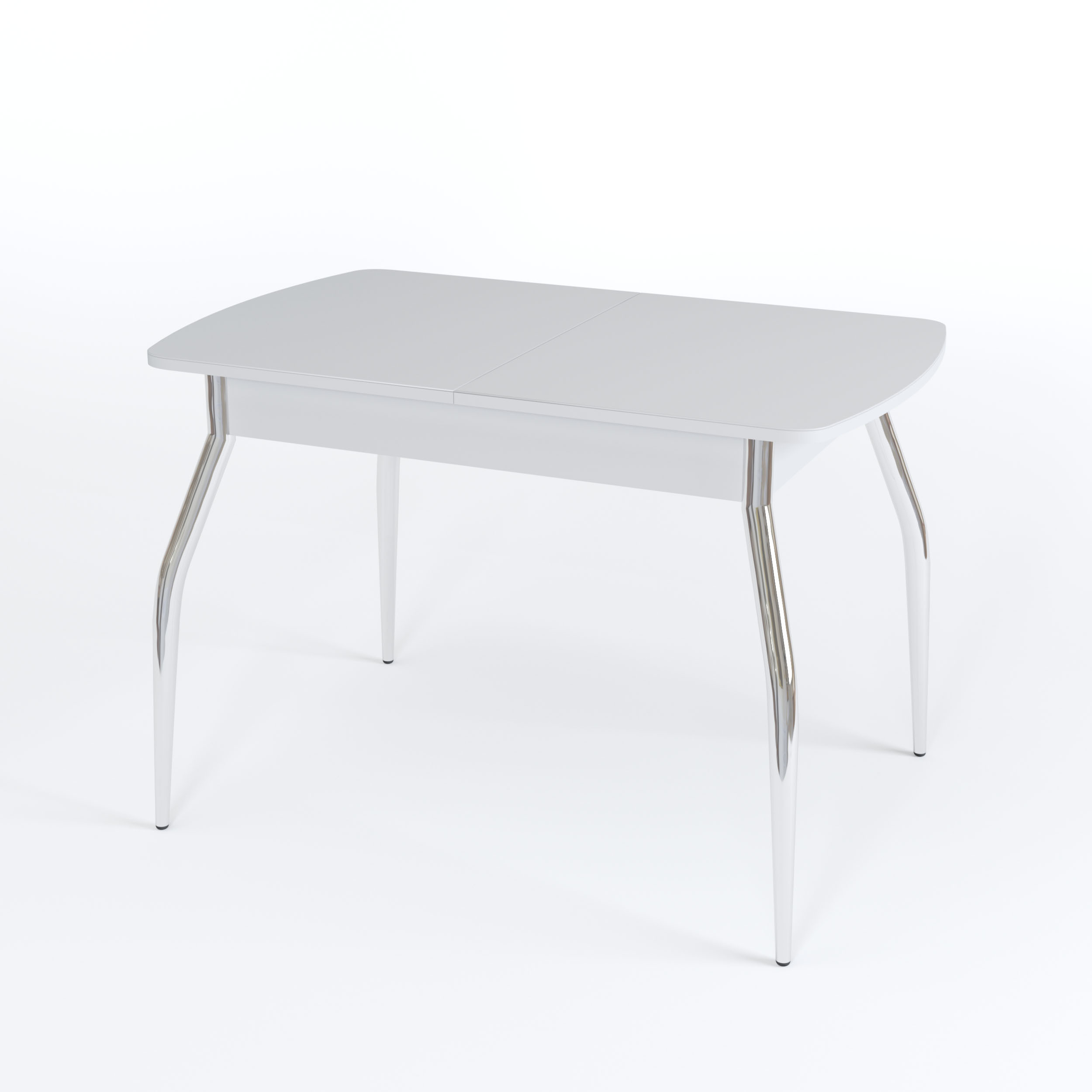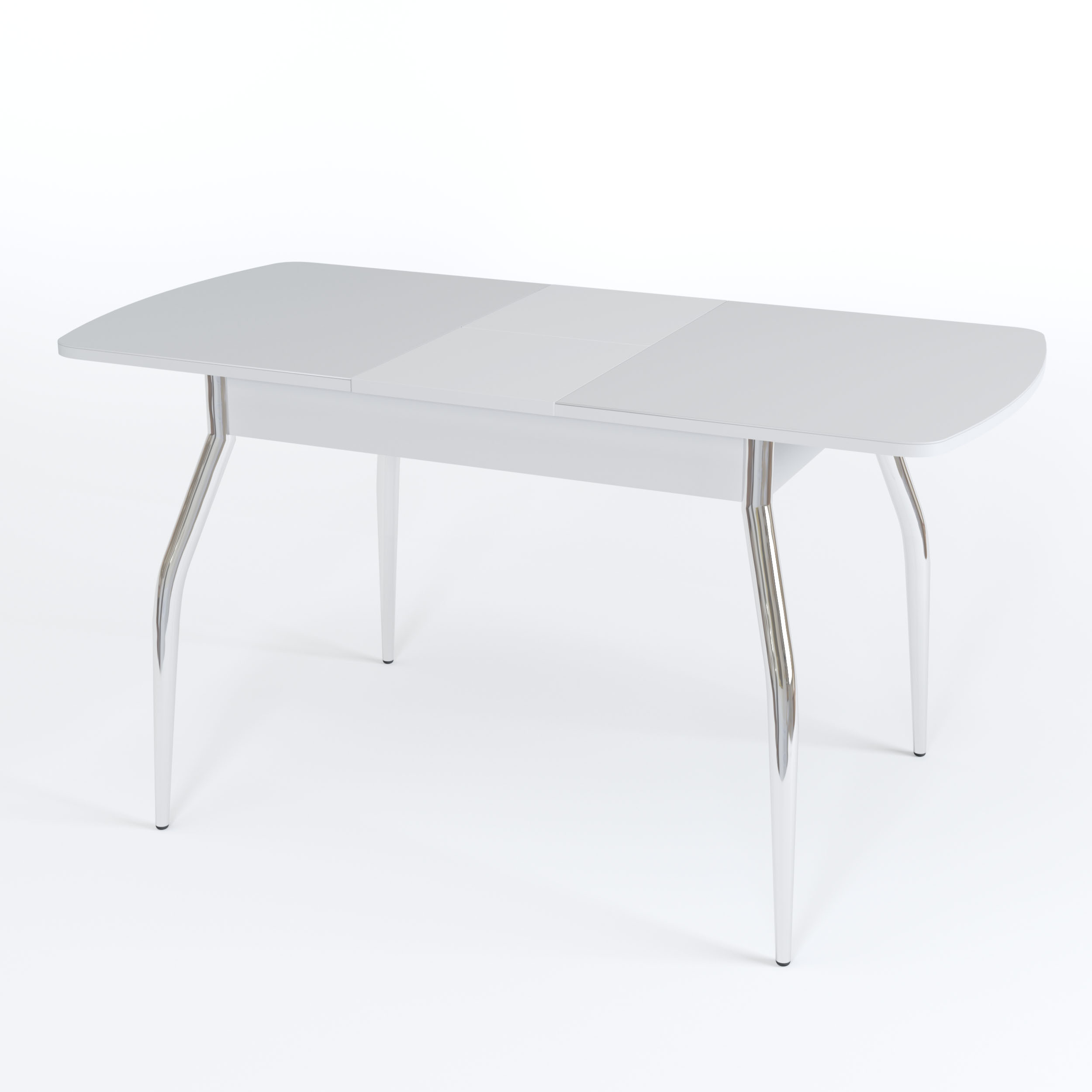 Стол обеденный Раздвижной Аспен, столешница со стеклом (белое, глянц.), ноги гальваника, 90х60х75 см