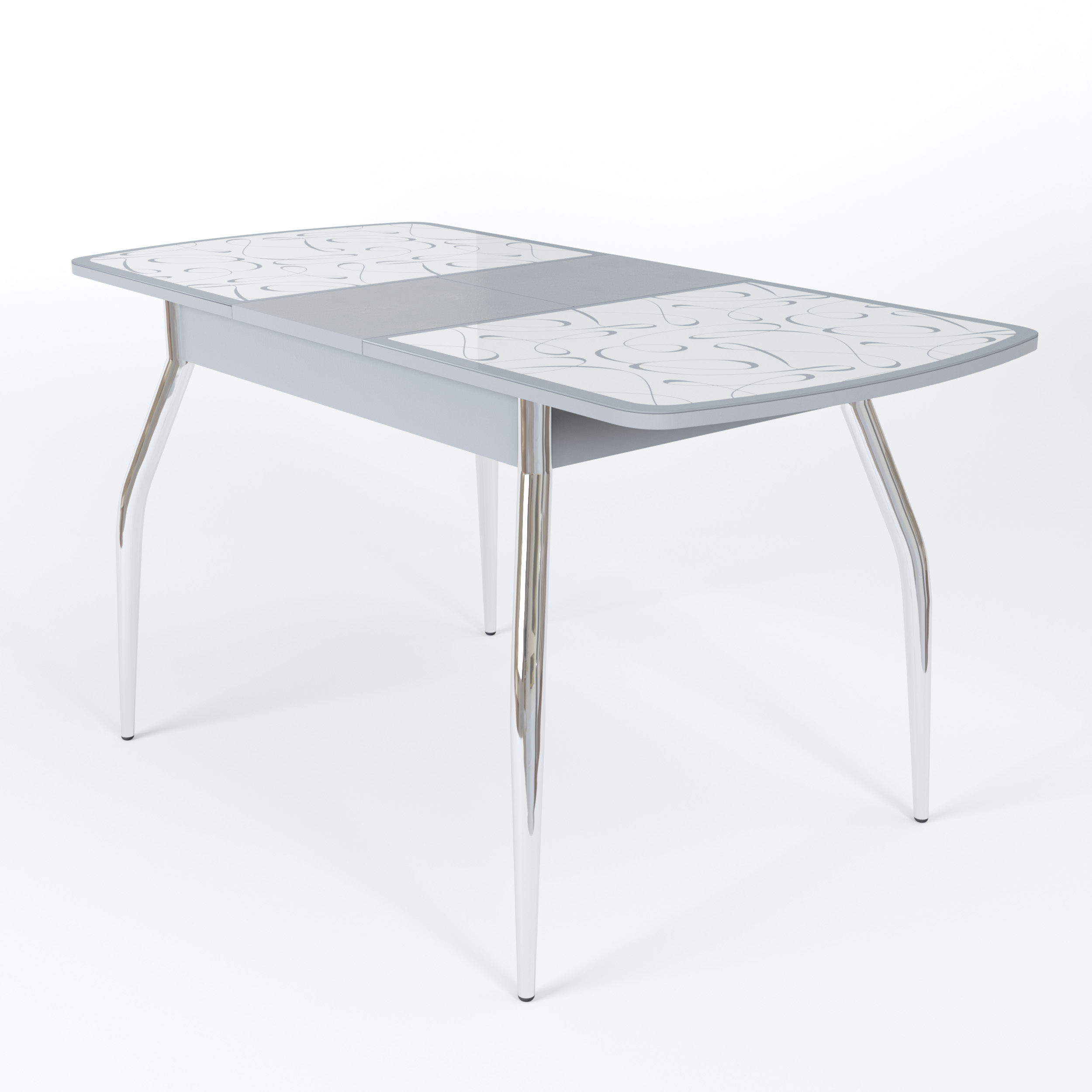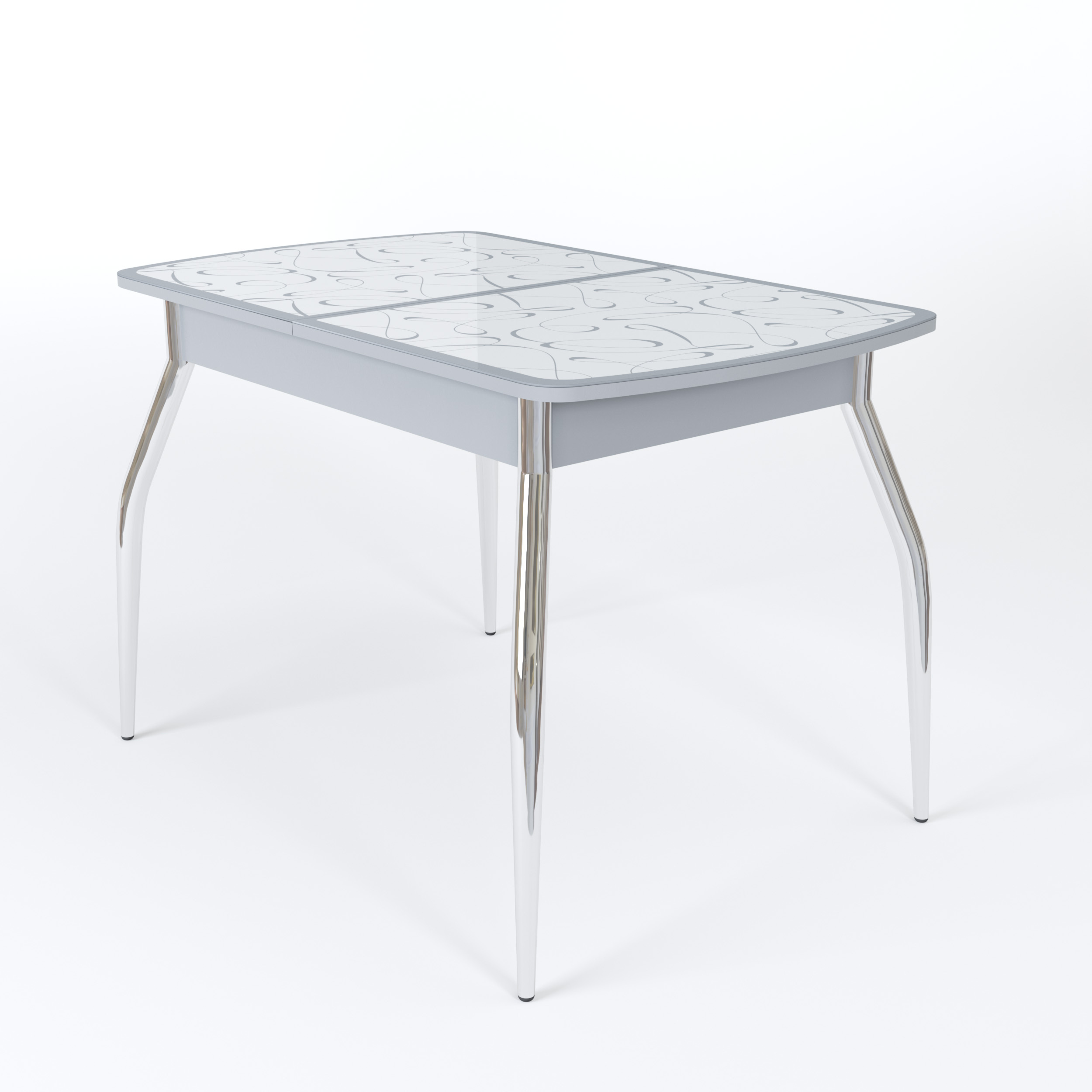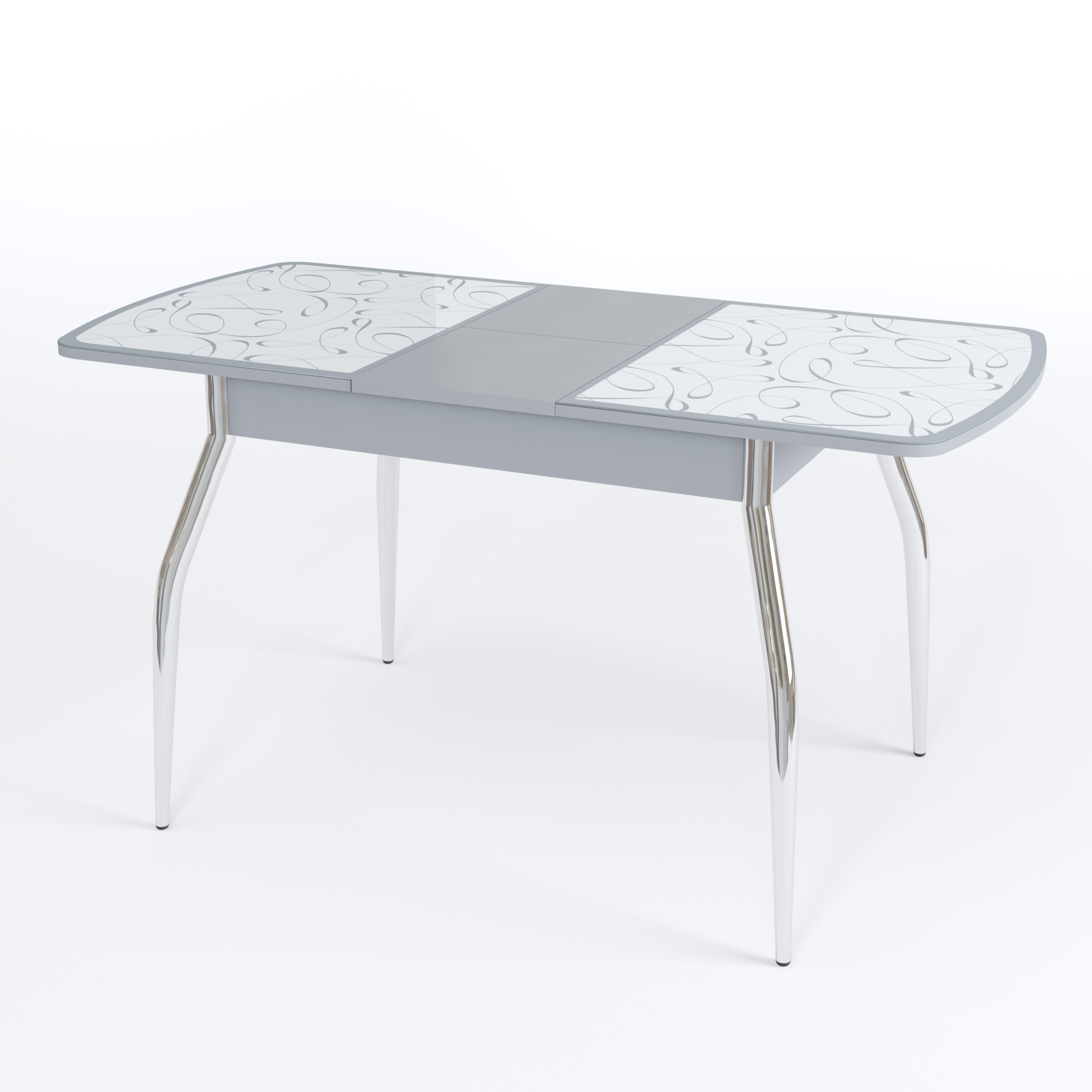 Стол обеденный Раздвижной Чикаго, столешница со стеклом, фотопечать, ноги гальваника, 110х68х75 см