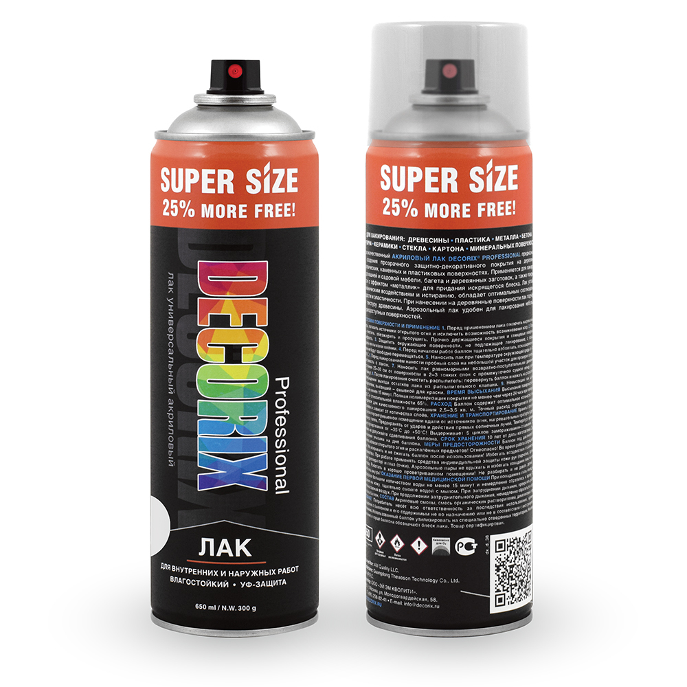 Аэрозольный акриловый лак DECORIX Professional 650 мл глянцевый, большой объем