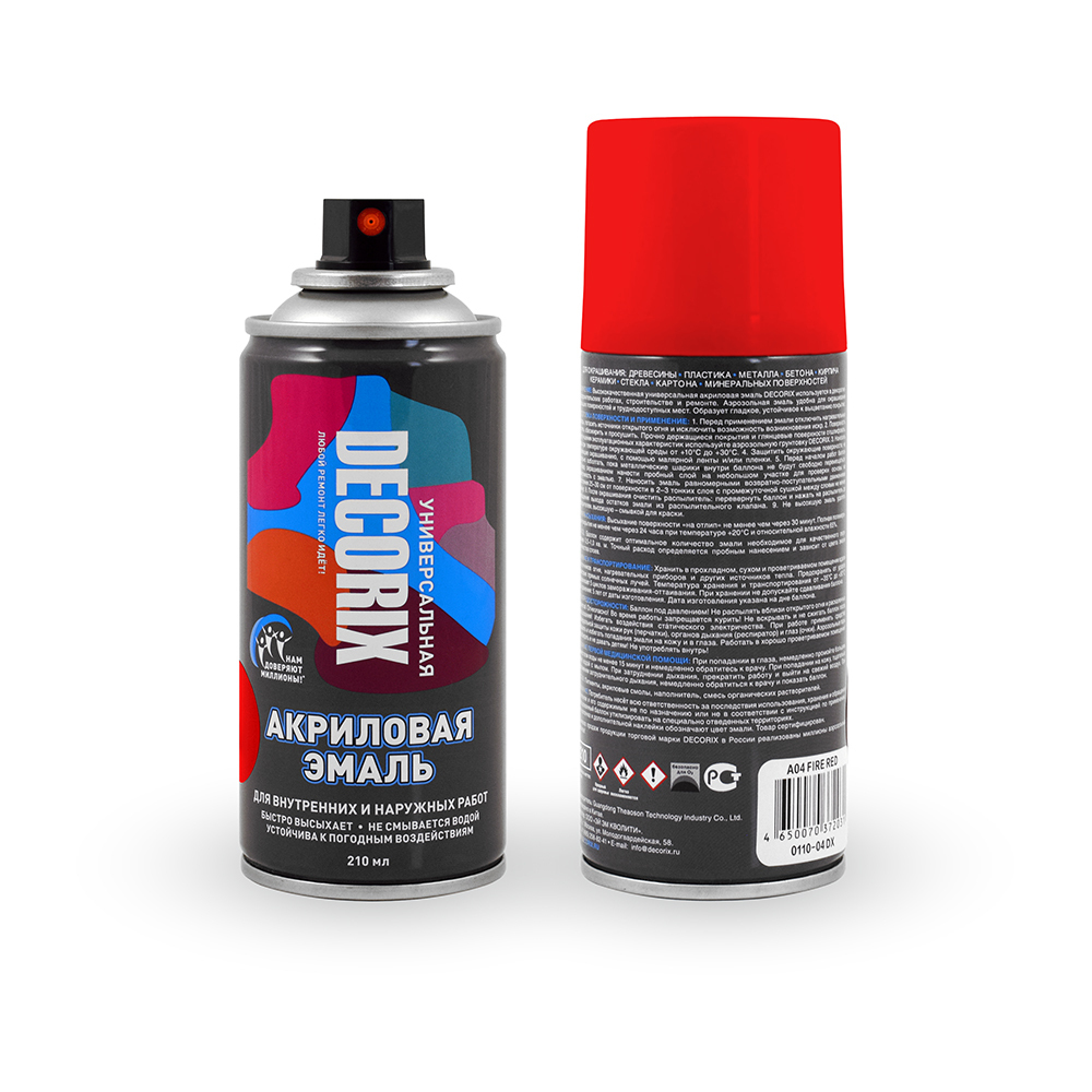 Аэрозольная краска Decorix A04 Быстросохнущая, Акриловая, красный