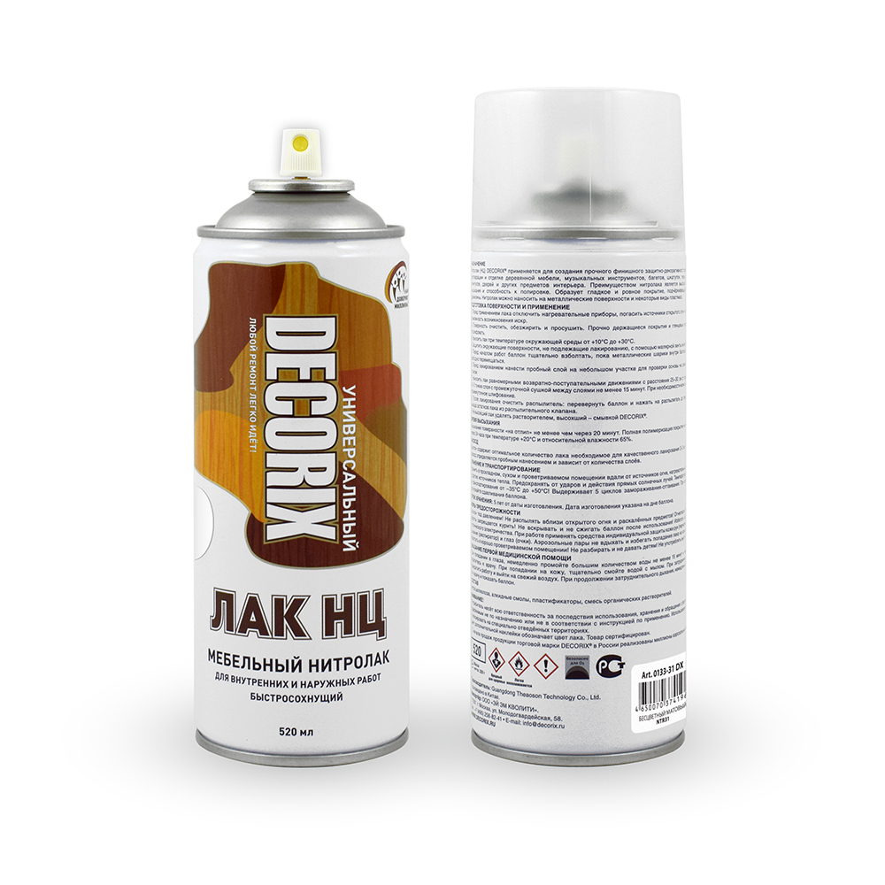 DECORIX Аэрозольный нитролак для дерева и мебели 520 мл, прозрачный матовый