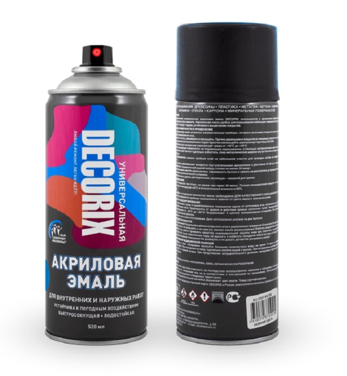 Аэрозольная краска Decorix по пластику Быстросохнущая, Акриловая, Матовое покрытие, черный