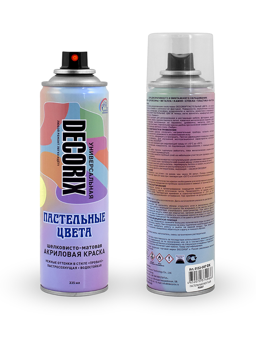 Аэрозольная краска Decorix на водной основе, Акриловая, Матовое покрытие, желтый
