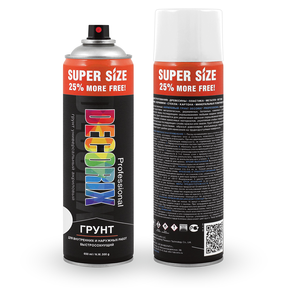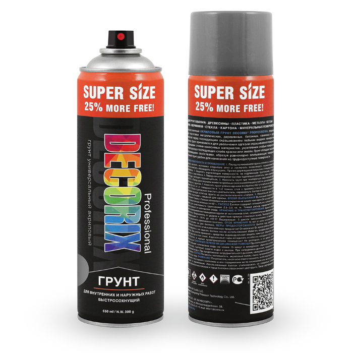 Аэрозольная краска Decorix Грунт выгодный объем, Матовое покрытие, 0.65 л, белый