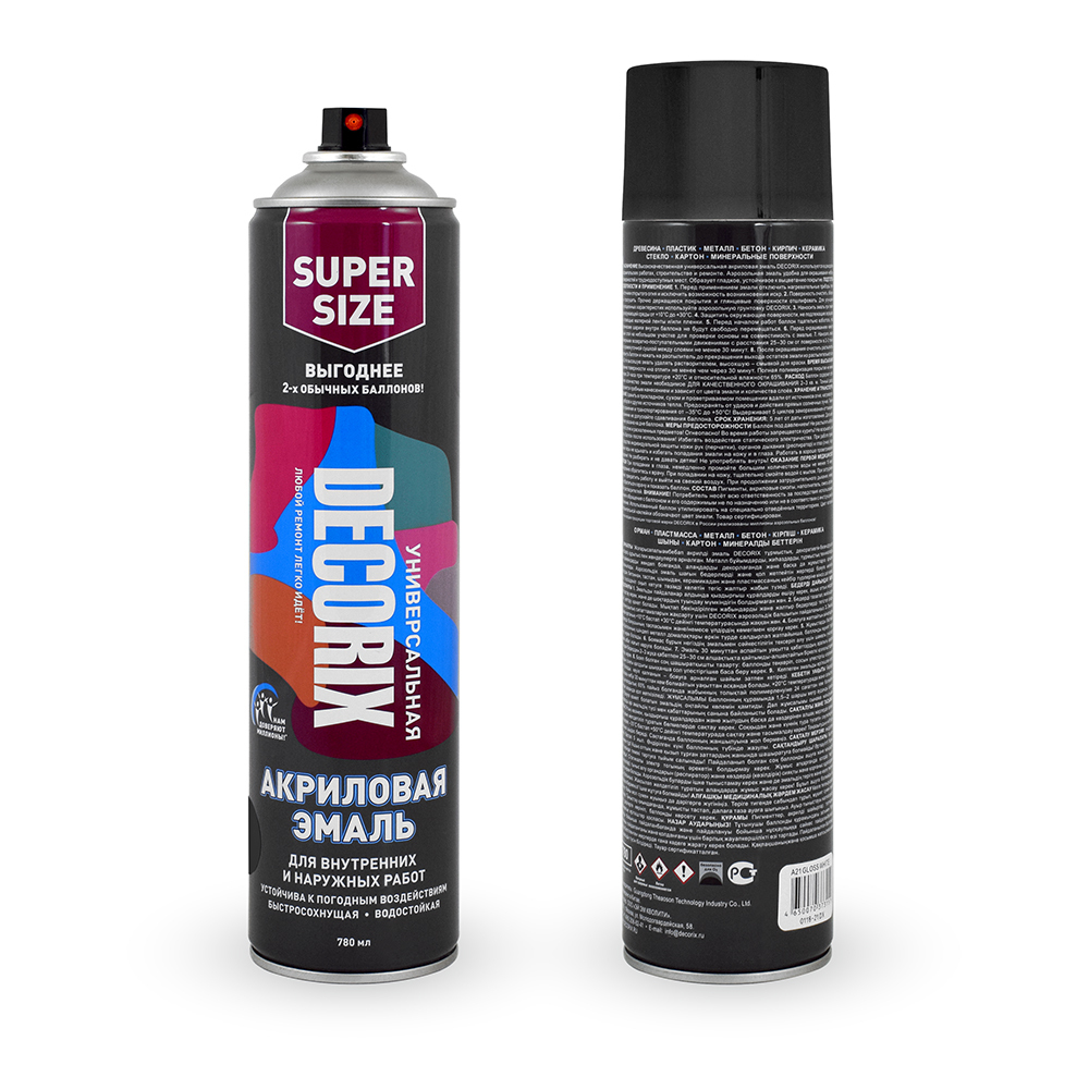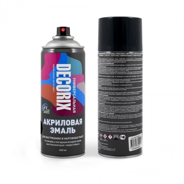 Аэрозольная краска Decorix универсальная 520 мл, Акриловая, Глянцевое покрытие, черный