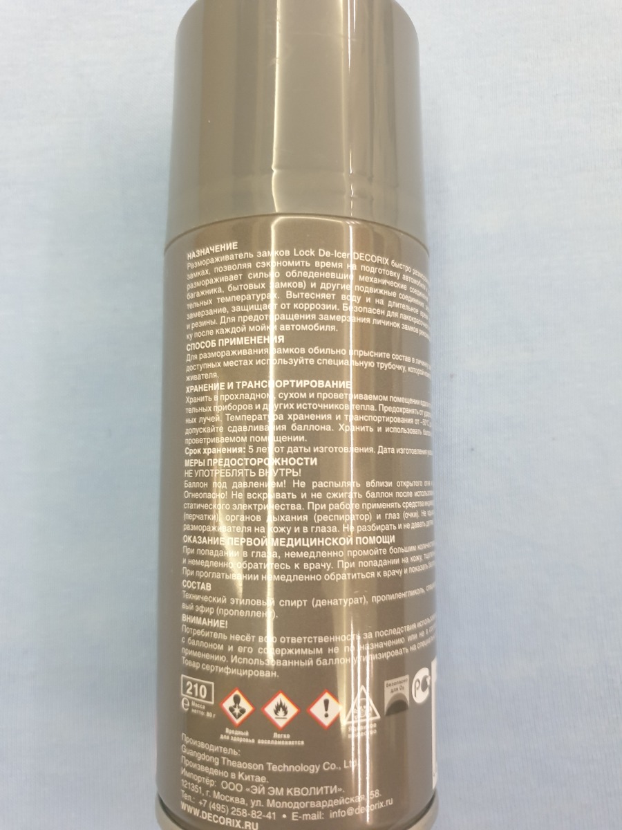 DECORIX Размораживатель замков, аэрозоль 210 мл