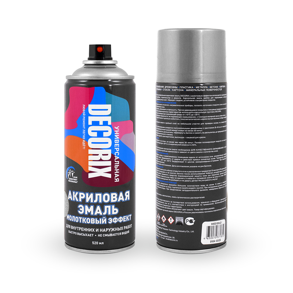 Эмаль Decorix с молотковым эффектом Быстросохнущая, Глянцевое покрытие, 0.52 л, серебристый