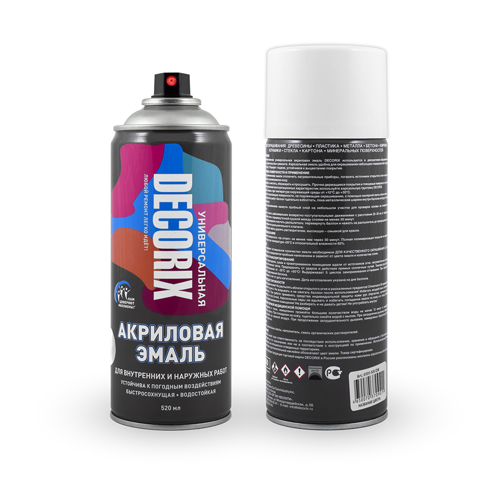Аэрозольная краска Decorix 0127-03 DX Быстросохнущая, Акриловая, Матовое покрытие, черный