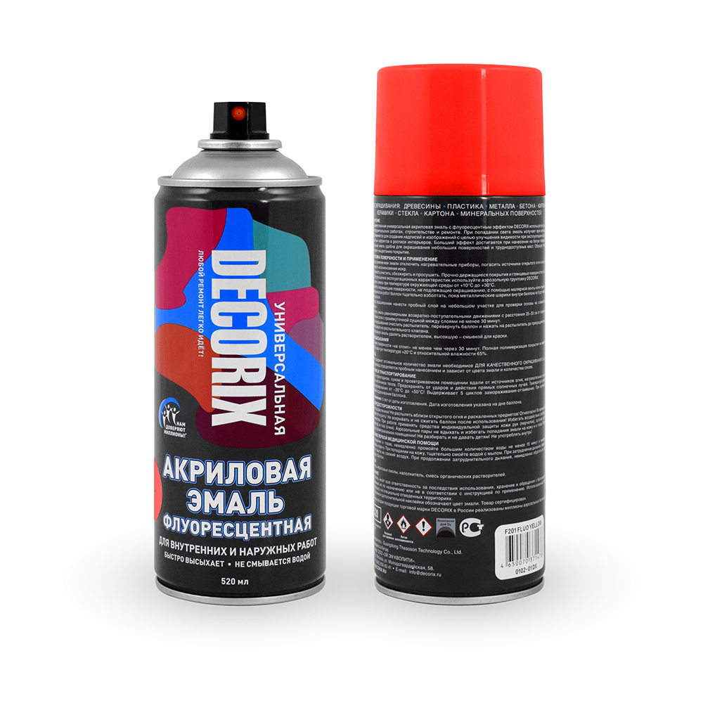 Аэрозольная краска Decorix с флуоресцентным эффектом, Акриловая, Матовое покрытие, оранжевый
