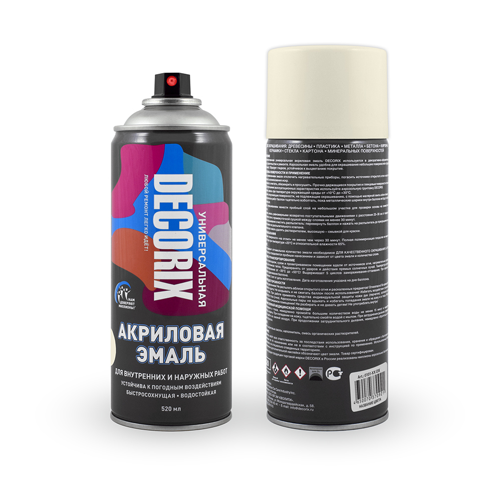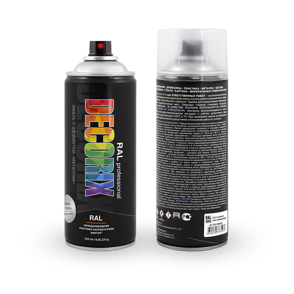 Аэрозольная краска Decorix RAL Быстросохнущая, Акриловая, Глянцевое покрытие, серебристый
