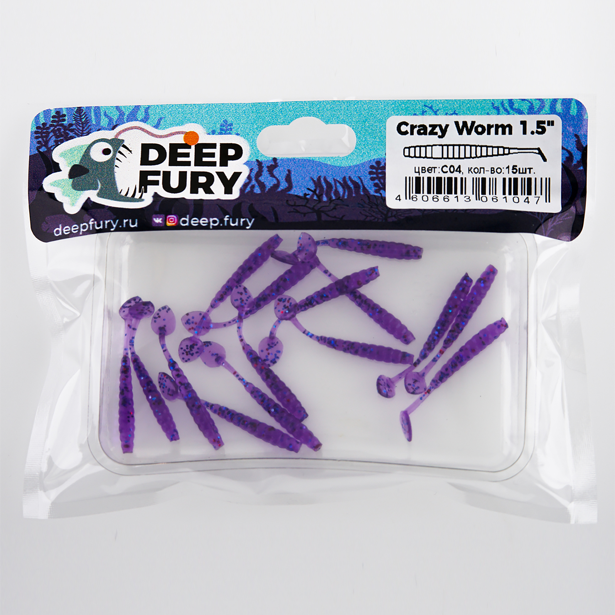 Силиконовая приманка Deep Fury Crazy Worm 1.5" (38 мм.) цвет c04