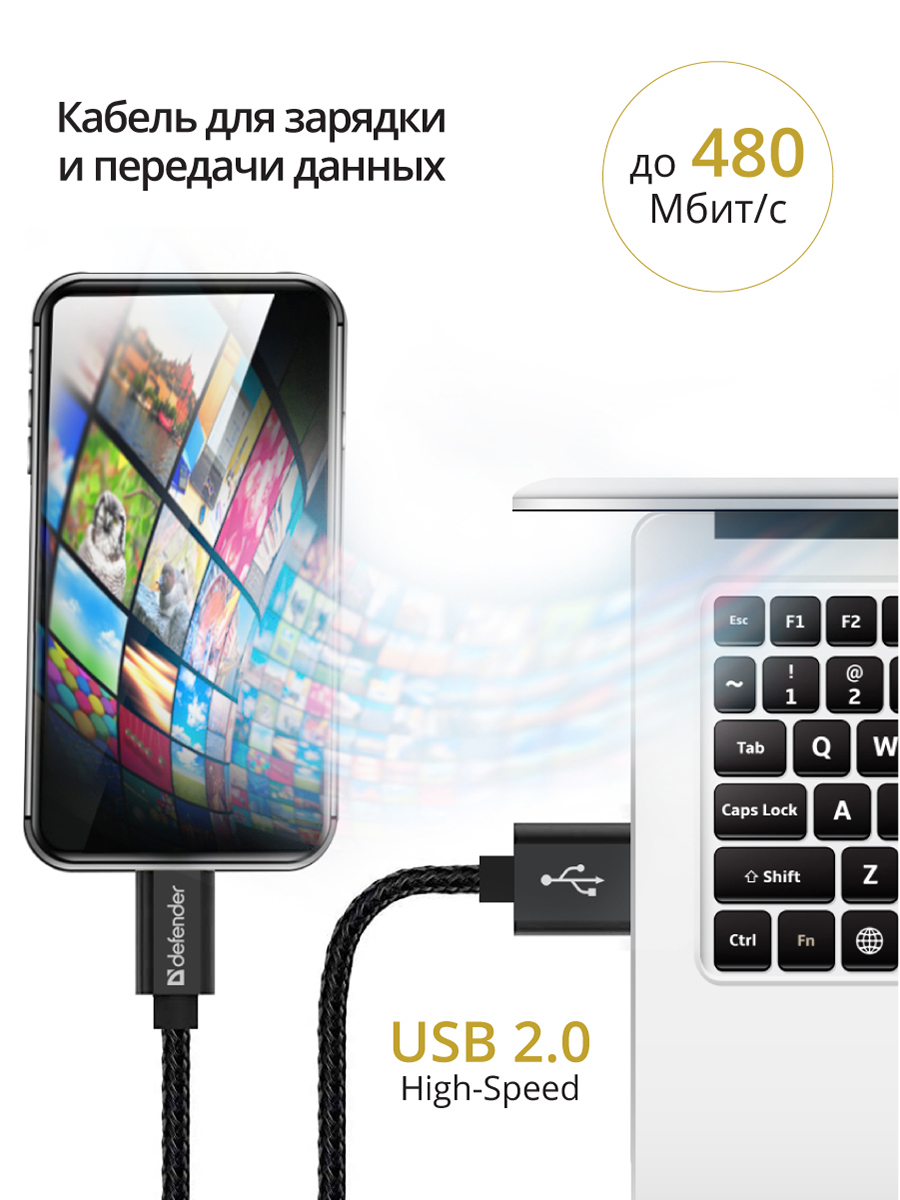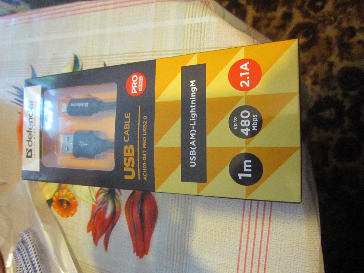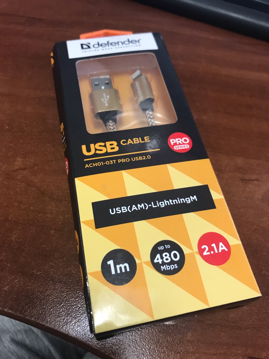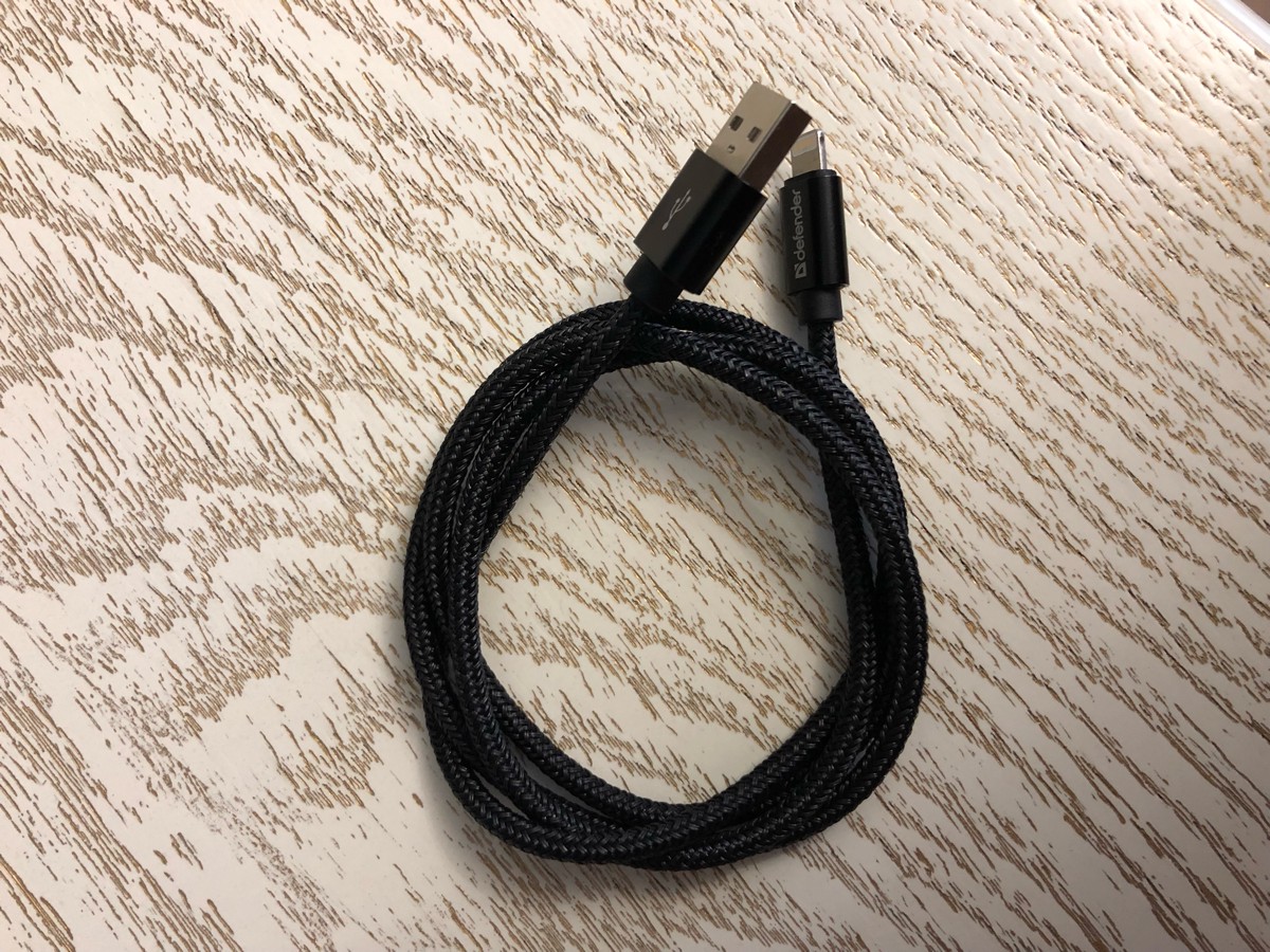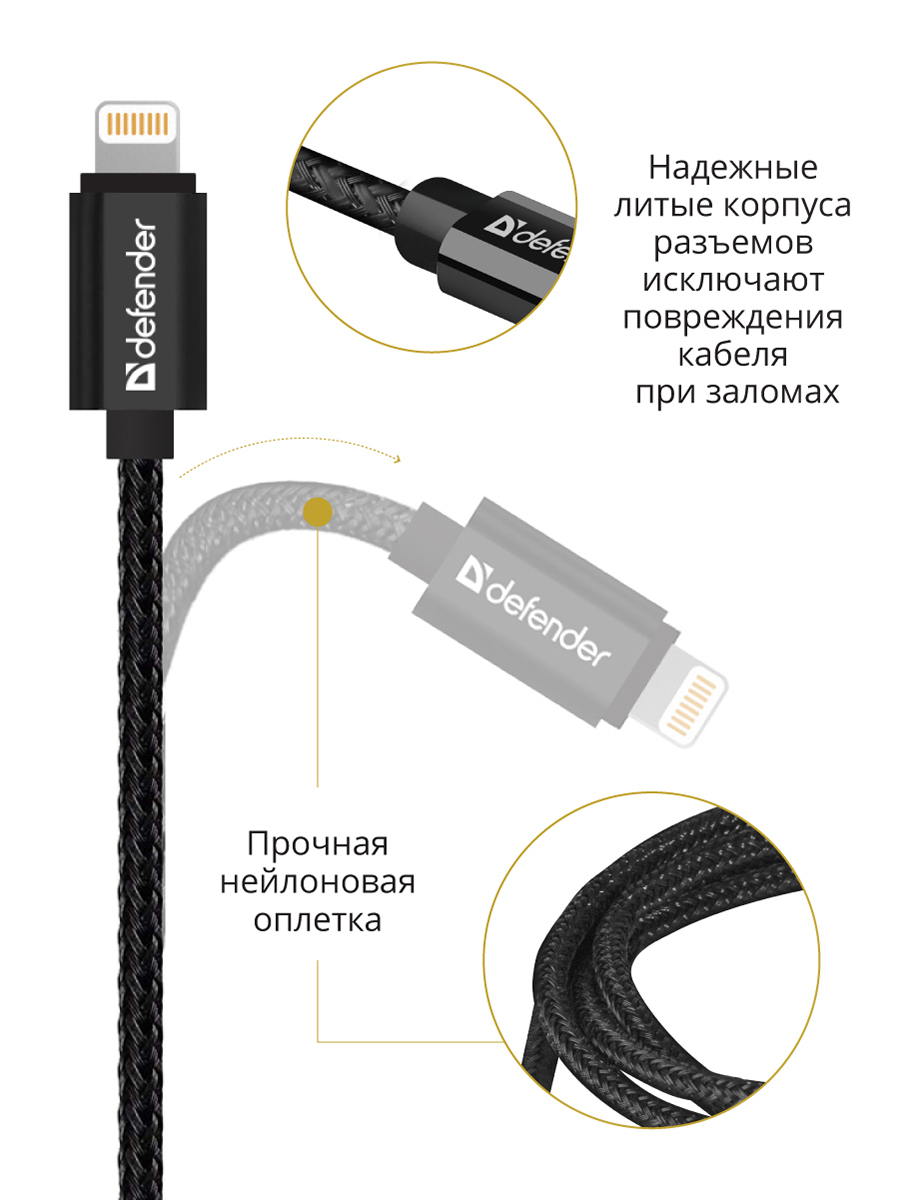 Кабель для зарядки телефона Lightning USB для Apple iPhone, Defender PRO 2.1A, 1 метр, черный