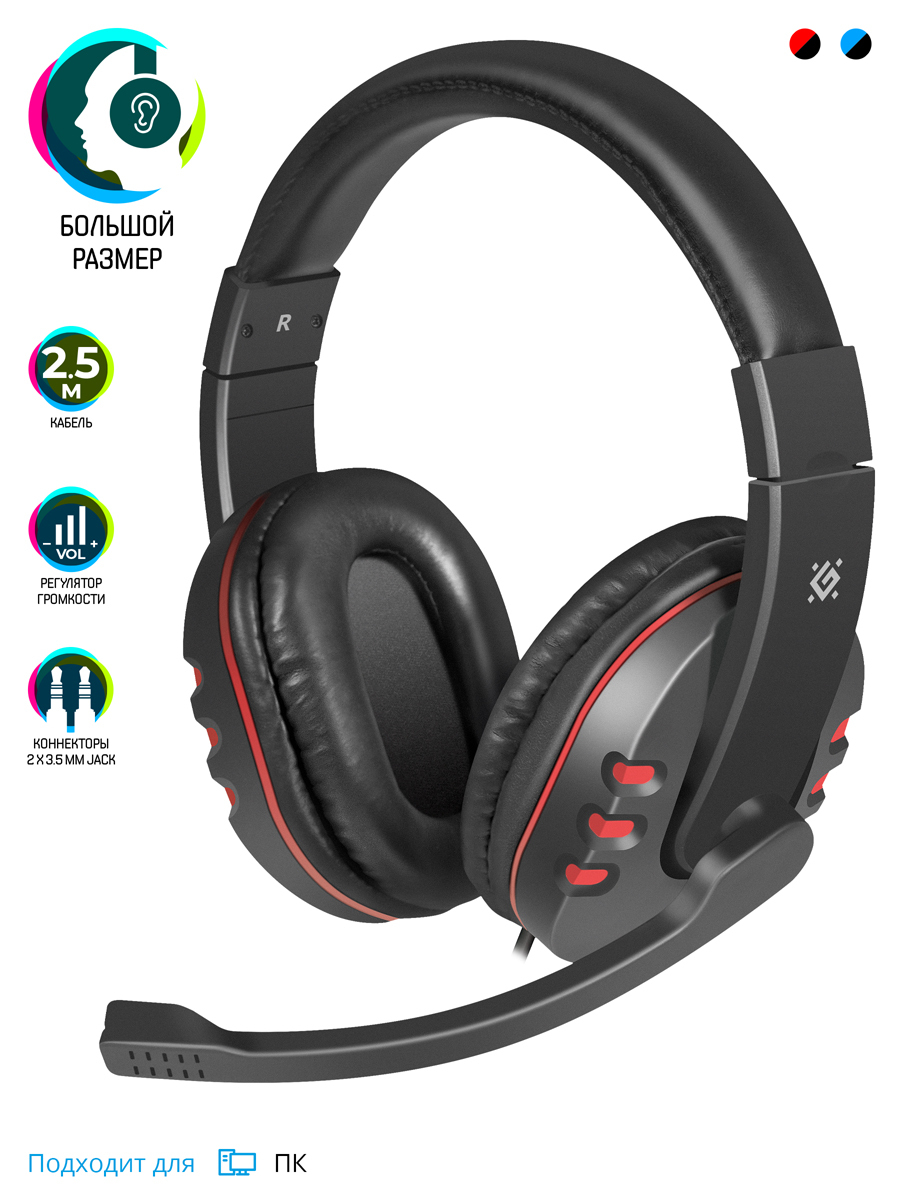 Компьютерная гарнитура, Игровые наушники Defender Scrapper 500, кабель 2 м, синий