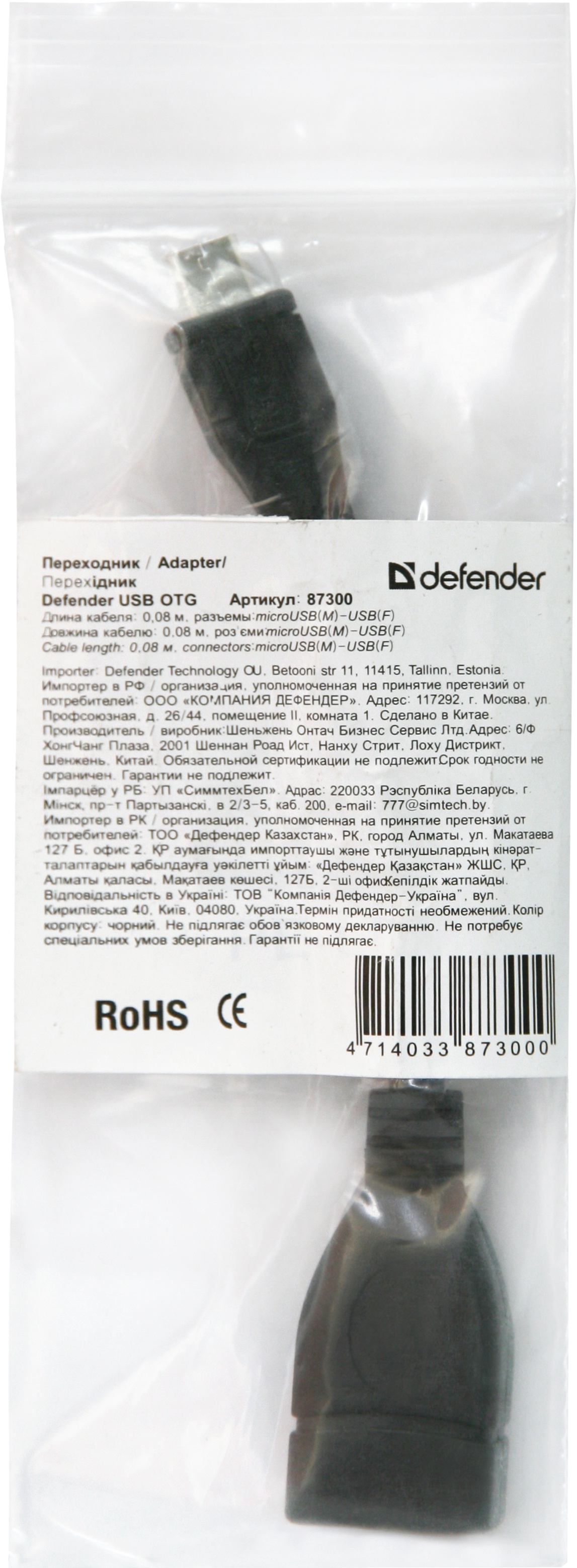 Переходник Defender USB OTG, microUSB(M)-USB(F), 8см, (87300)