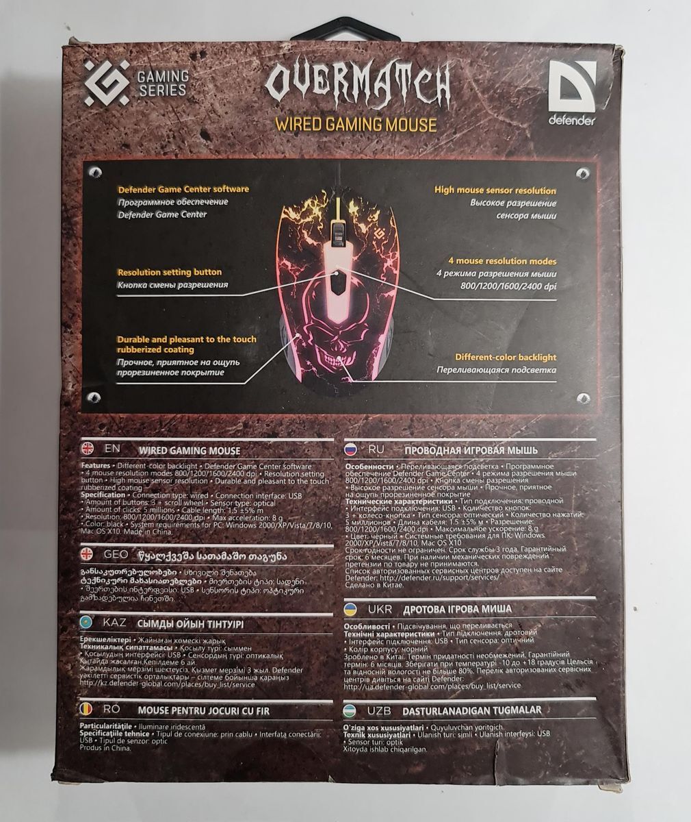 Игровая мышь Defender GM -925, 4 кнопки, 2400dpi. Уцененный товар