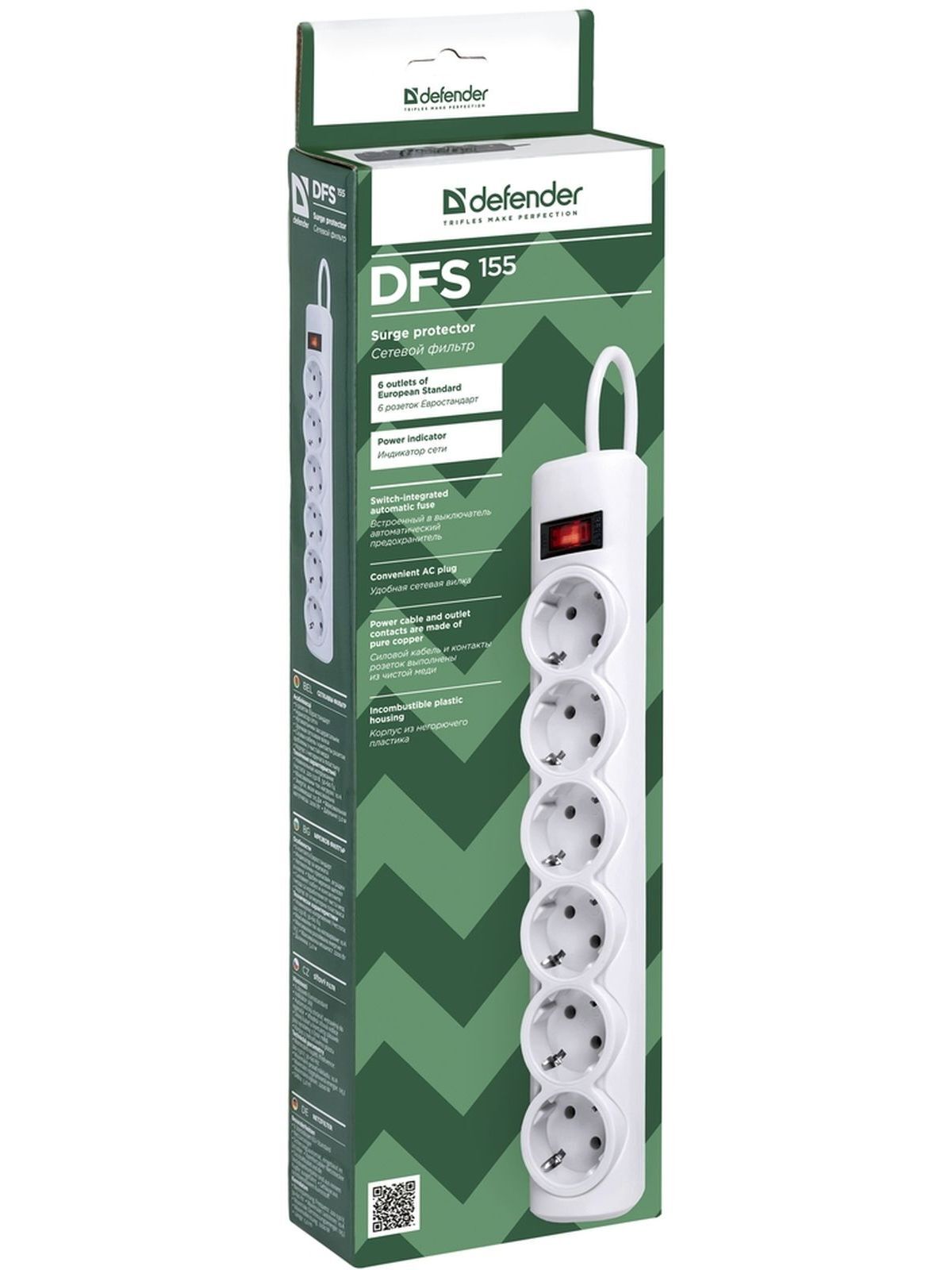 Сетевой фильтр-удлинитель Defender DFS, 6 розеток, 5 метров, белый