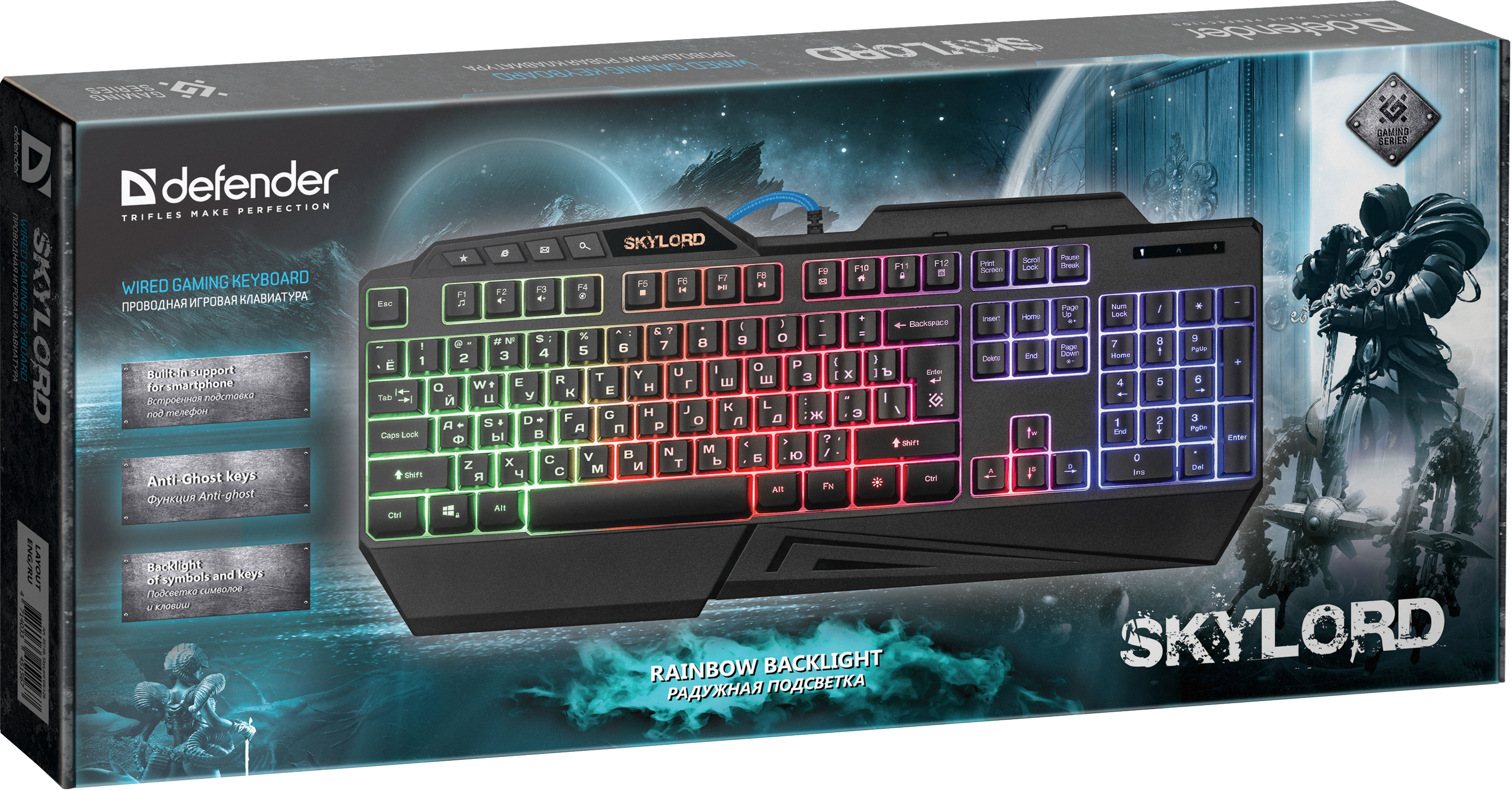Игровая клавиатура проводная Defender Paladin GK-370L, (Outemu Blue), черный