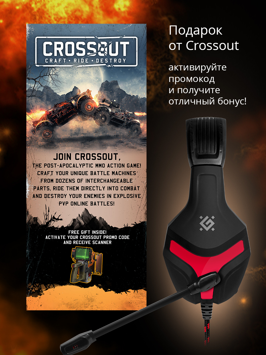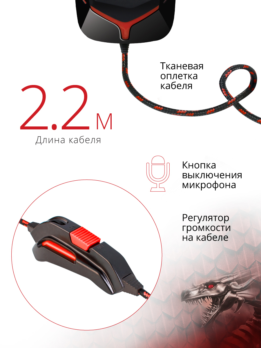 Игровые наушники, Компьютерная гарнитура Defender Scrapper 500, кабель 2 м, красный, черный