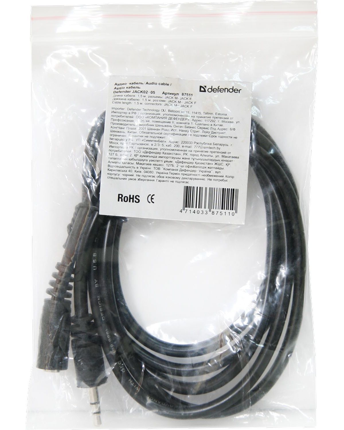 Defender MIC-109 черный, на прищепке, 1,8 м [64109]