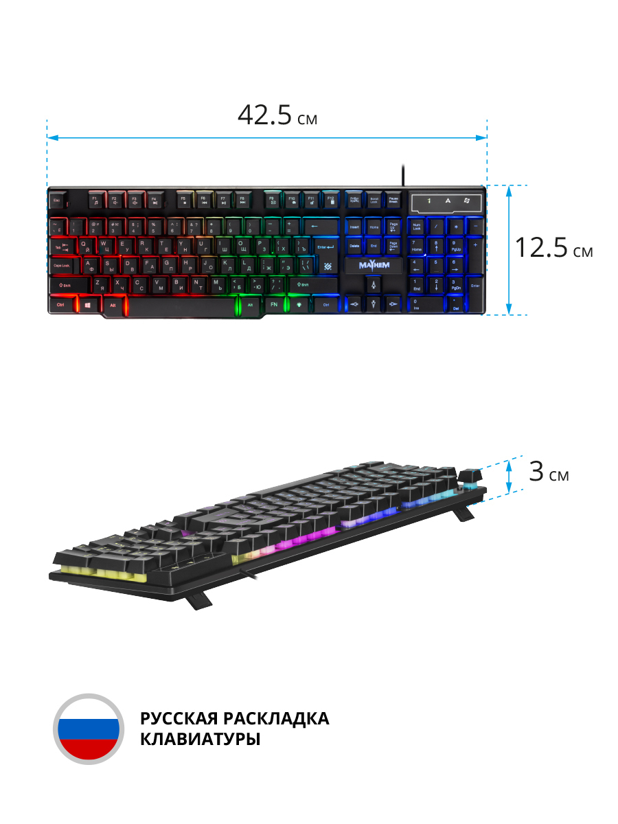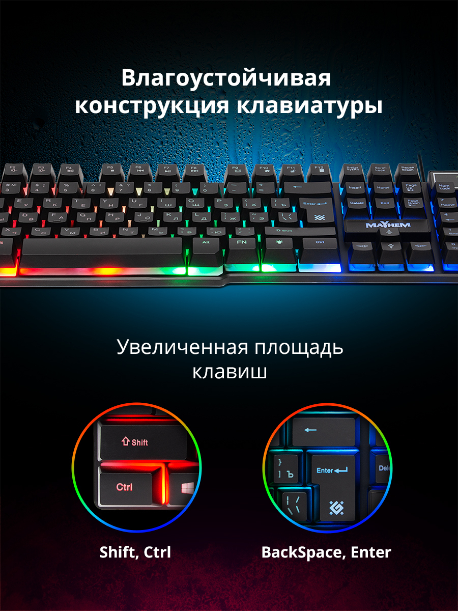 Игровая клавиатура проводная Defender Reborn GK-165DL, (Jixian Blue), черный