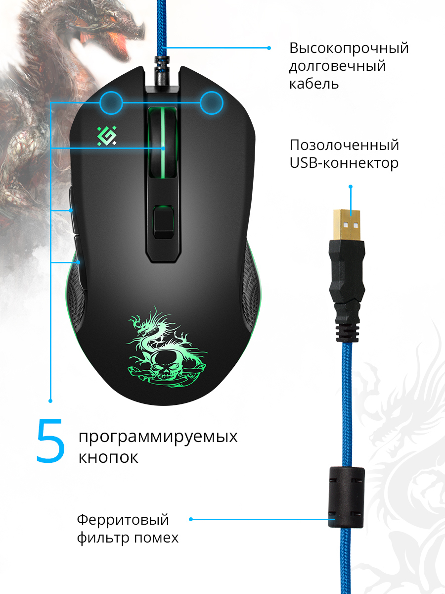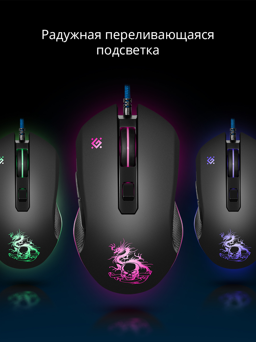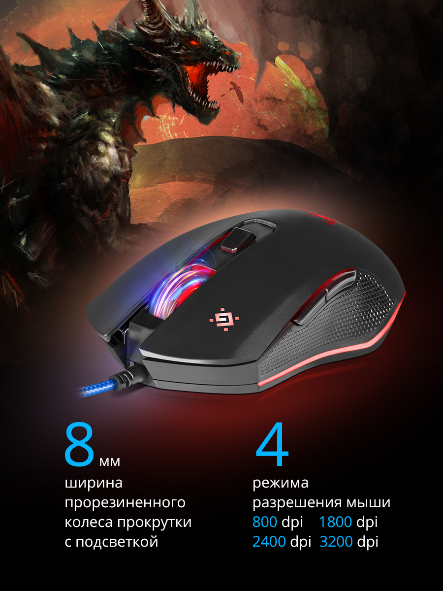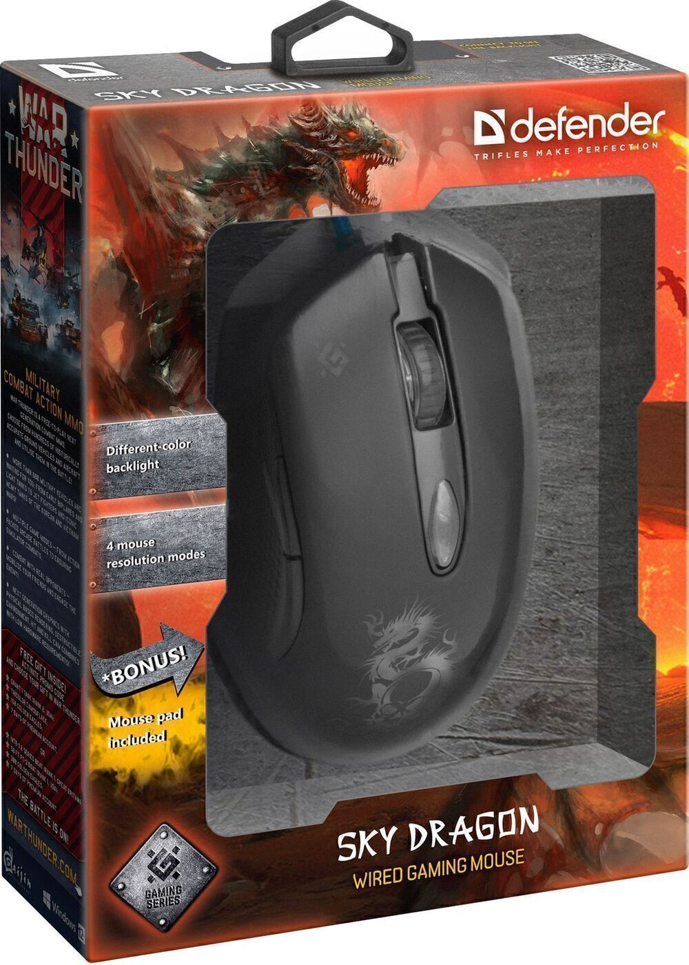 Игровая мышь проводная Defender Sky Dragon, 6 кнопок, 3200 dpi, черный