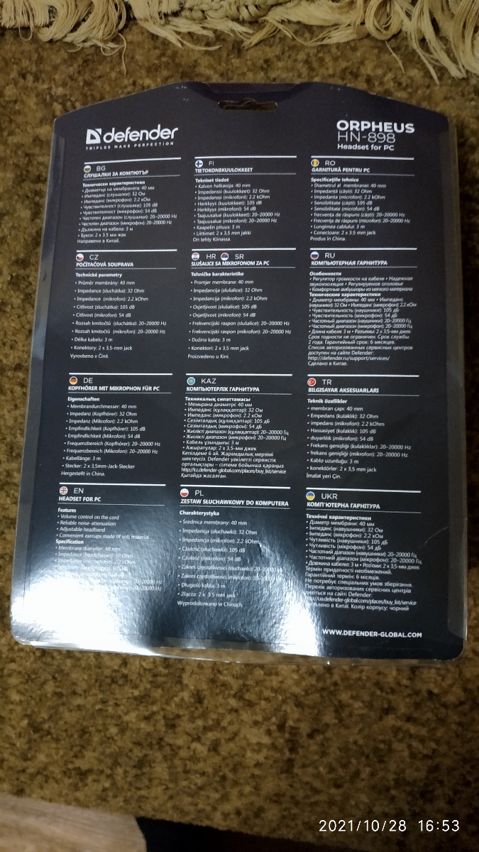 Игровые наушники проводные Defender Orpheus HN-898, черный