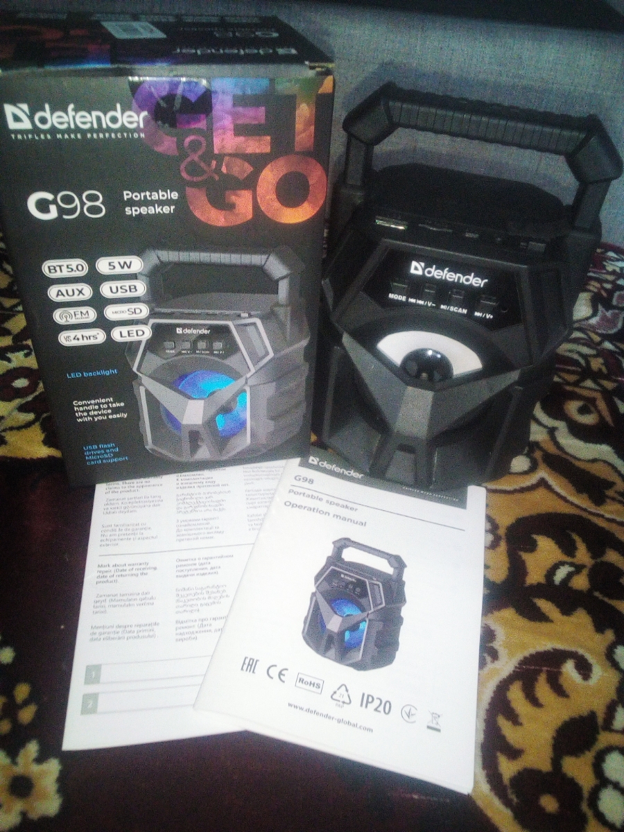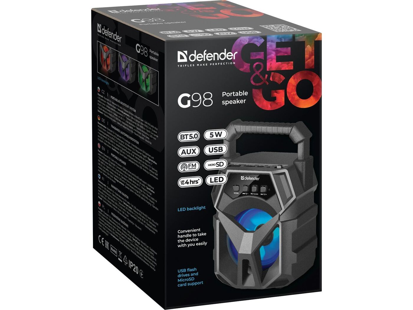 Портативная колонка Defender G98 5Вт, Light/BT/FM/TF/USB/AUX