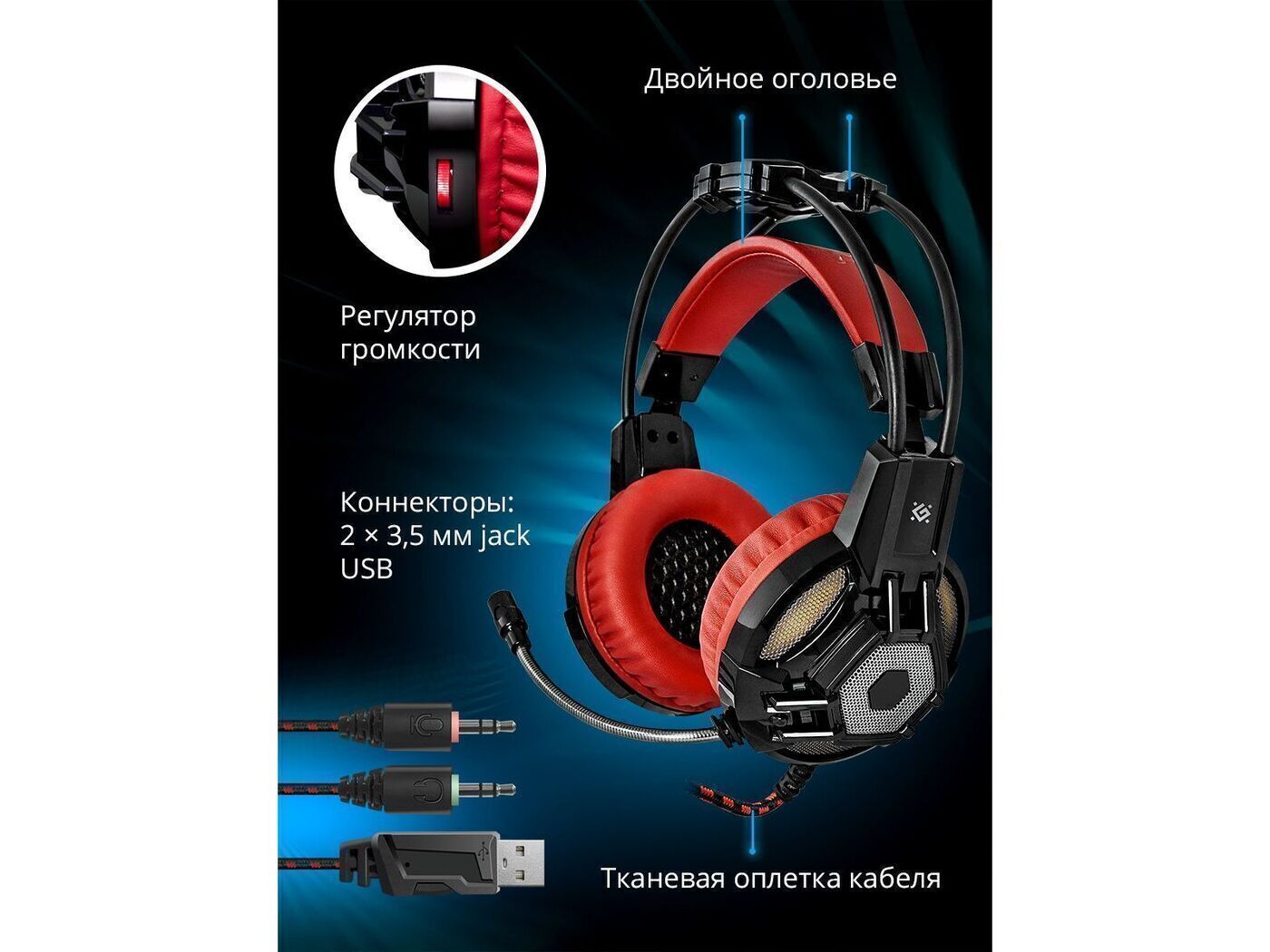 Наушники игровые с микрофоном Defender Warhead G-390 LED подсветка, кабель 1,8 м. Уцененный товар