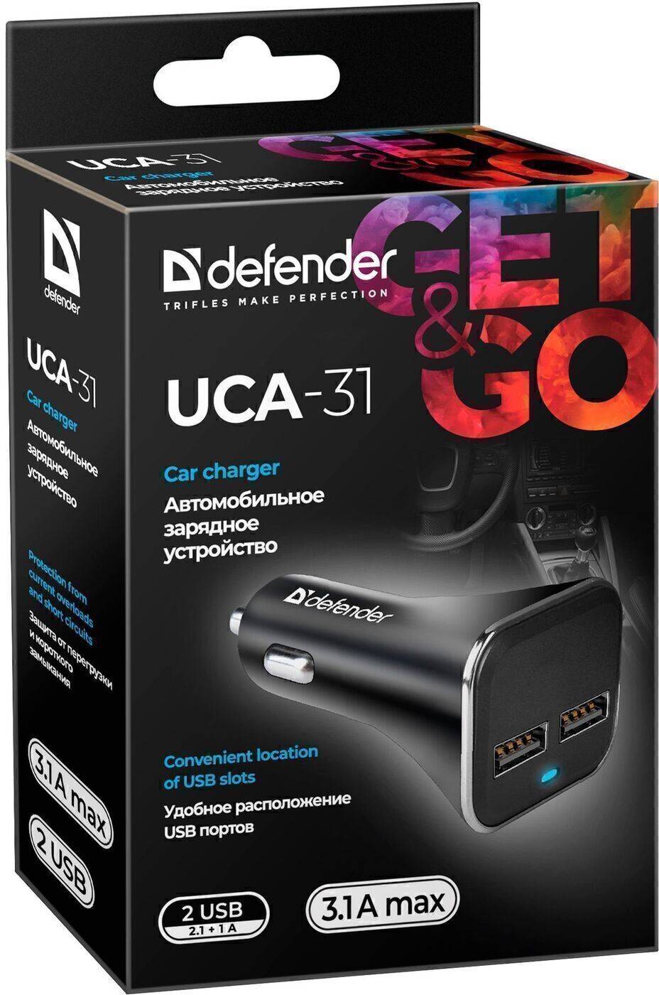 Автомобильное зарядное устройство на 2 USB Defender/ зарядка в прикуриватель 5V/3.1А