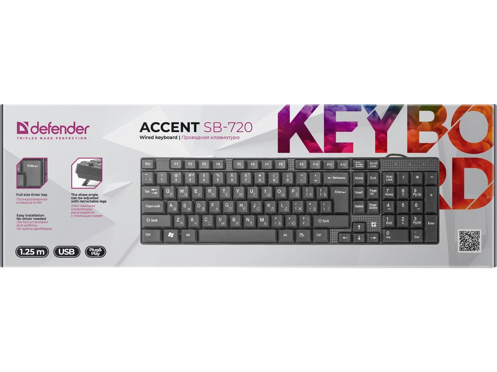 Проводная клавиатура Defender Accent SB-720 RU, черный, компактная