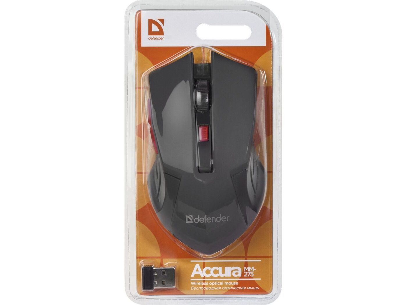 Мышь беспроводная Defender Accura, 6 кнопок, 1600 dpi, черный, красный