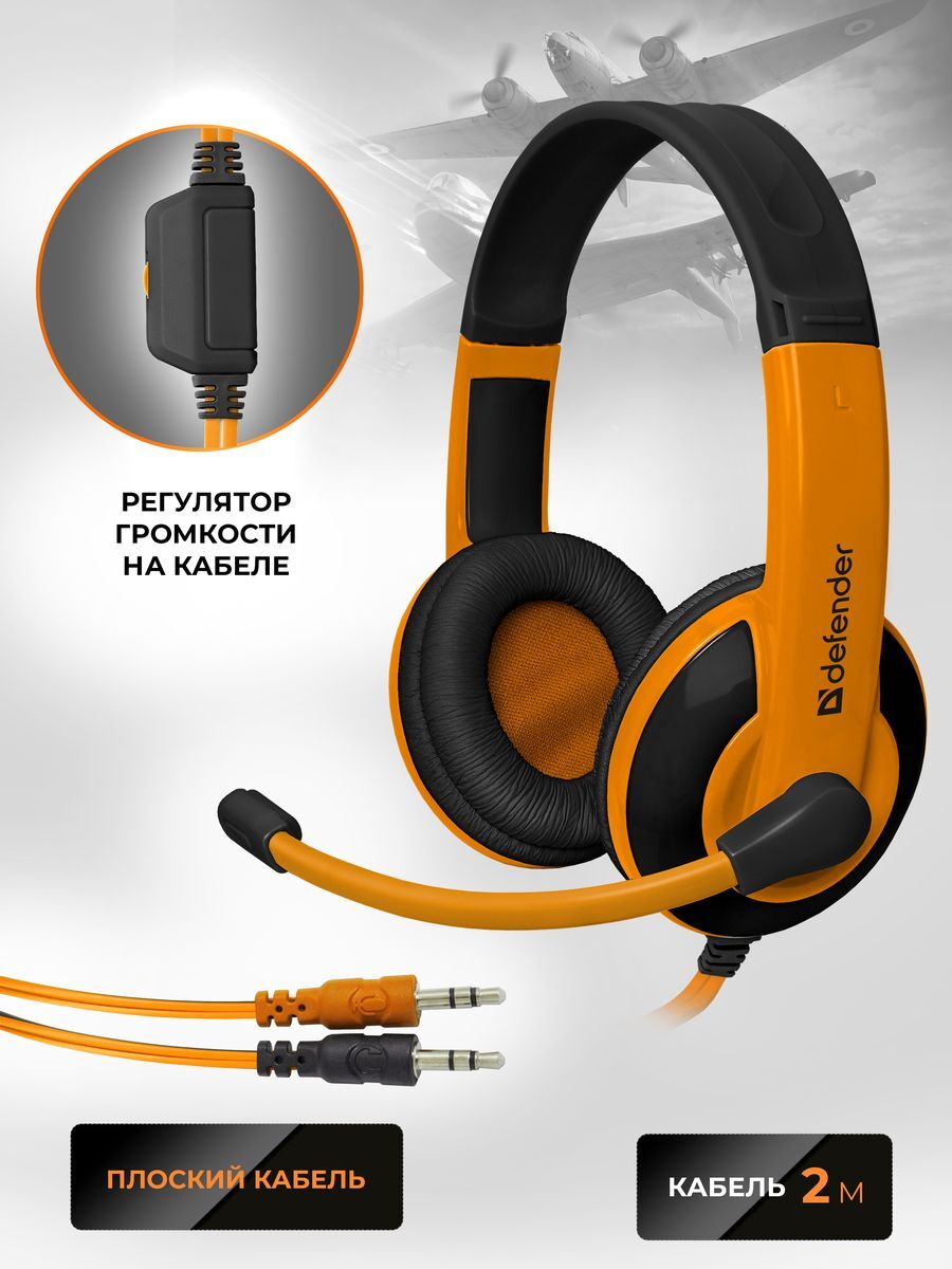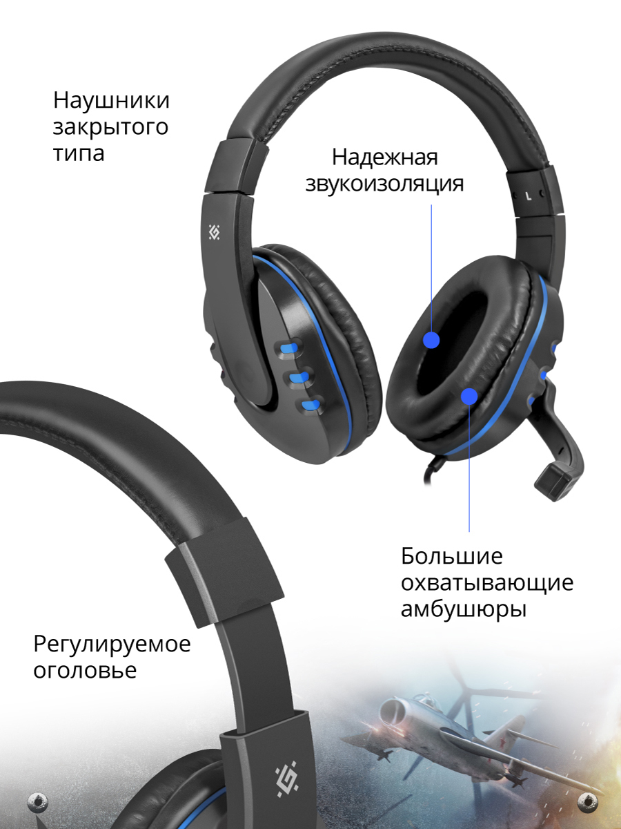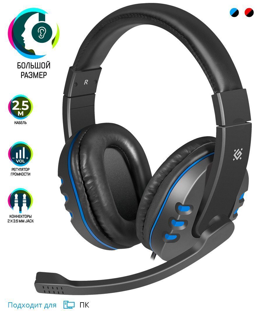 Игровые наушники Defender с микрофоном Gryphon 750, 4-pin, кабель 2 м, черный