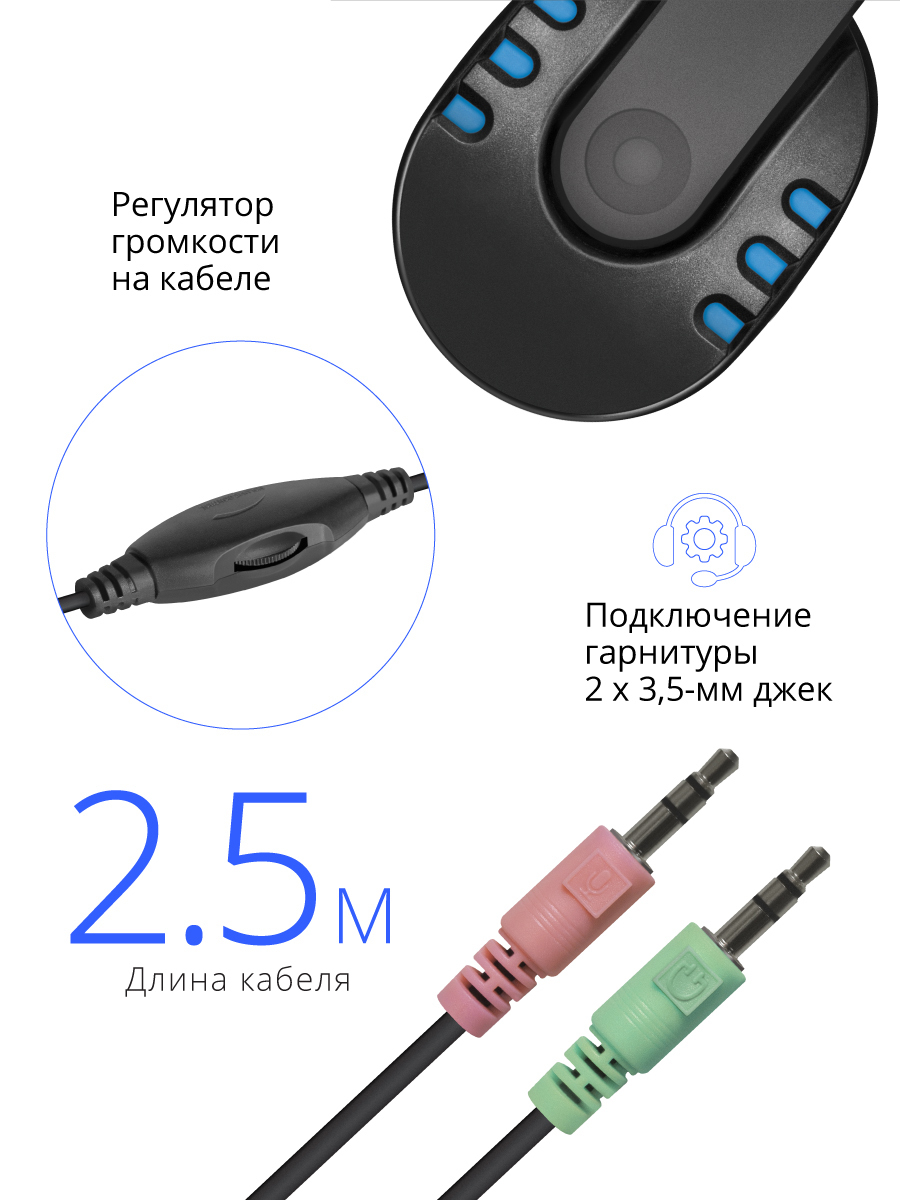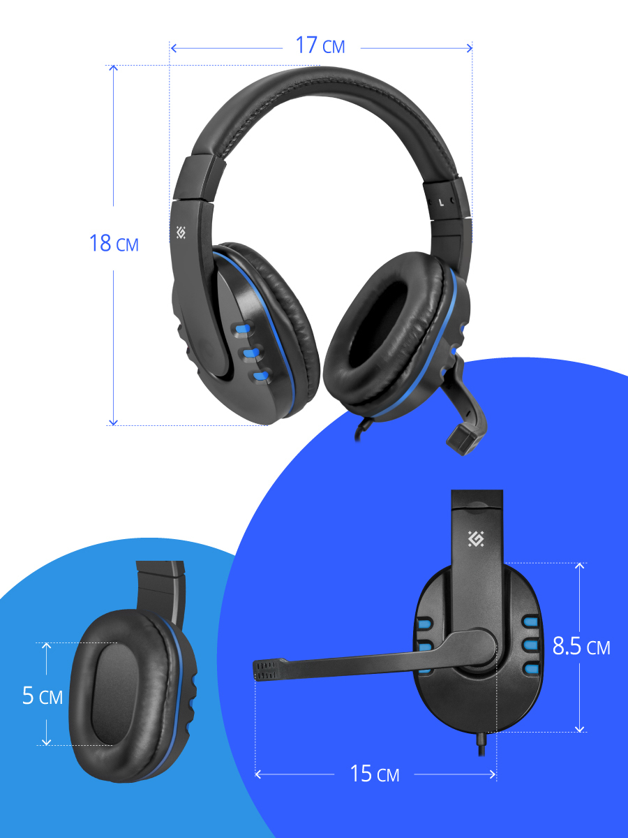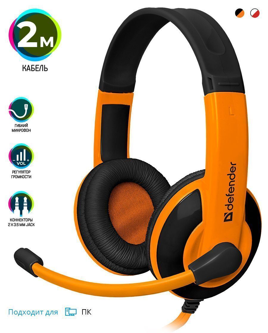 Игровые наушники Defender с микрофоном Gryphon 750, 4-pin, кабель 2 м, черный