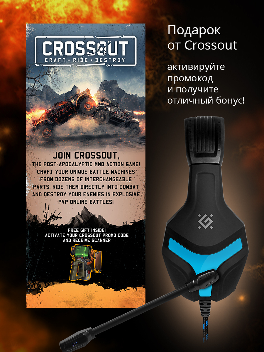 Компьютерная гарнитура, Игровые наушники Defender Scrapper 500, кабель 2 м, синий