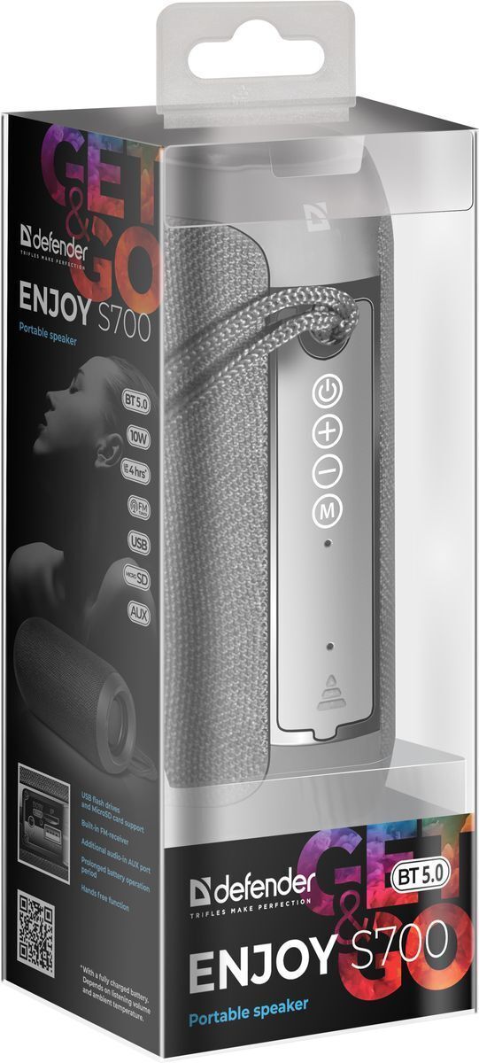Портативная акустика Defender Enjoy S700 серый, 10Вт, BT/FM/TF/USB/AUX. Уцененный товар