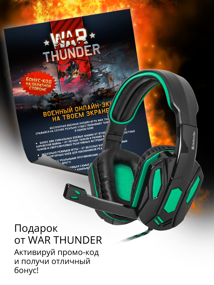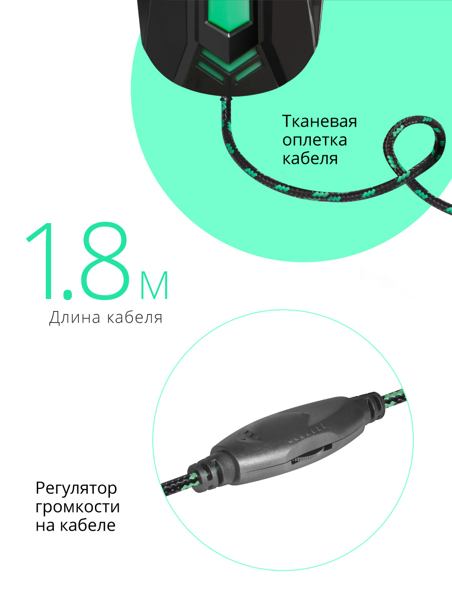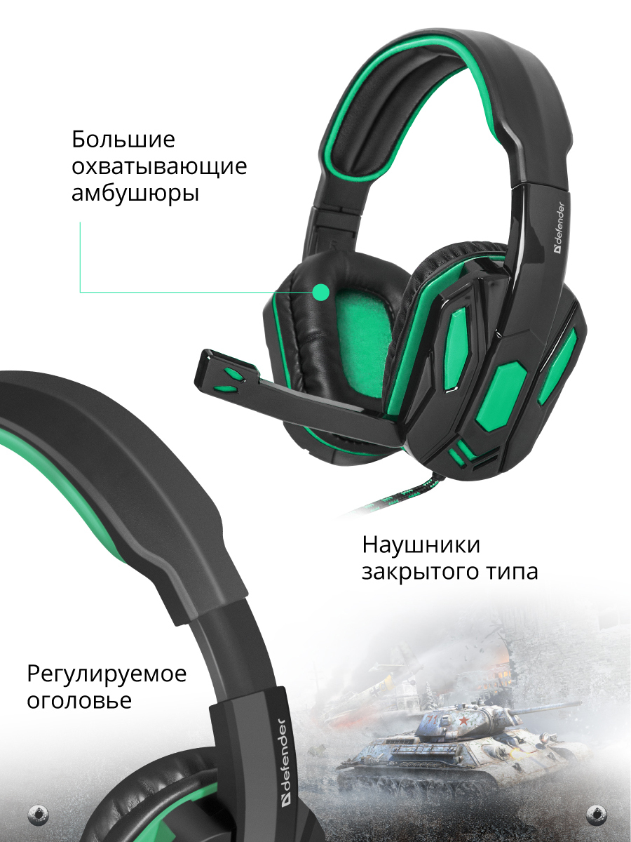 Игровые наушники Defender Warhead G-275GB,зеленый, черный