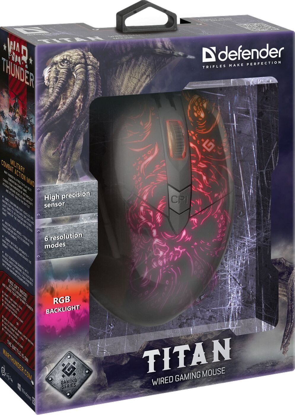 Игровая мышь проводная Defender Titan GM-650L, черный