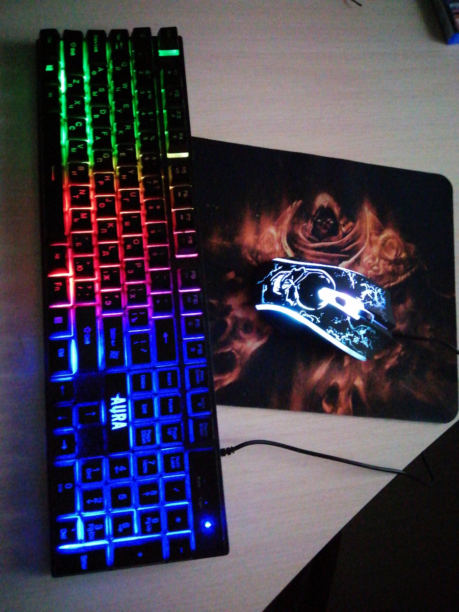 Игровой набор Defender Aura, Подсветка, мышь + клавиатура + ковер