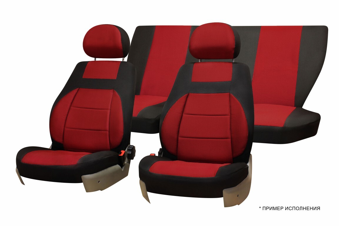 Чехлы на сиденья Lada 2110, 1996-2007, седан, доп. боковая поддержка, жаккард черный/ красный