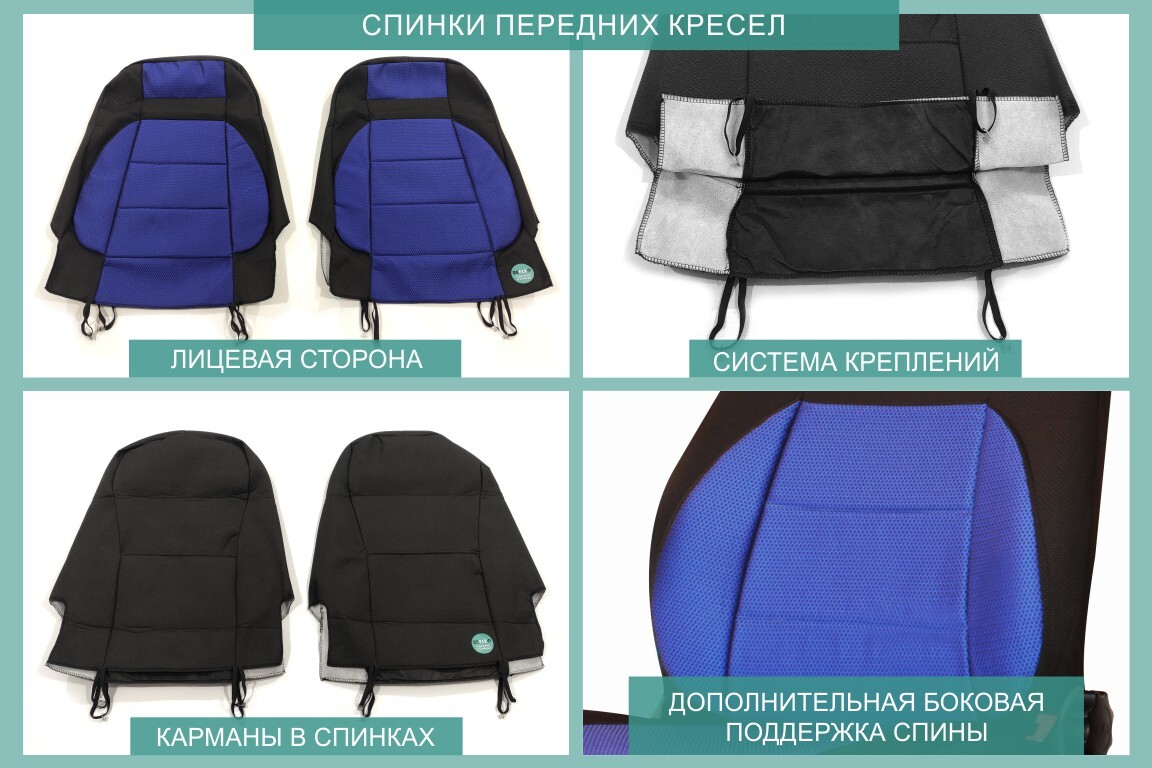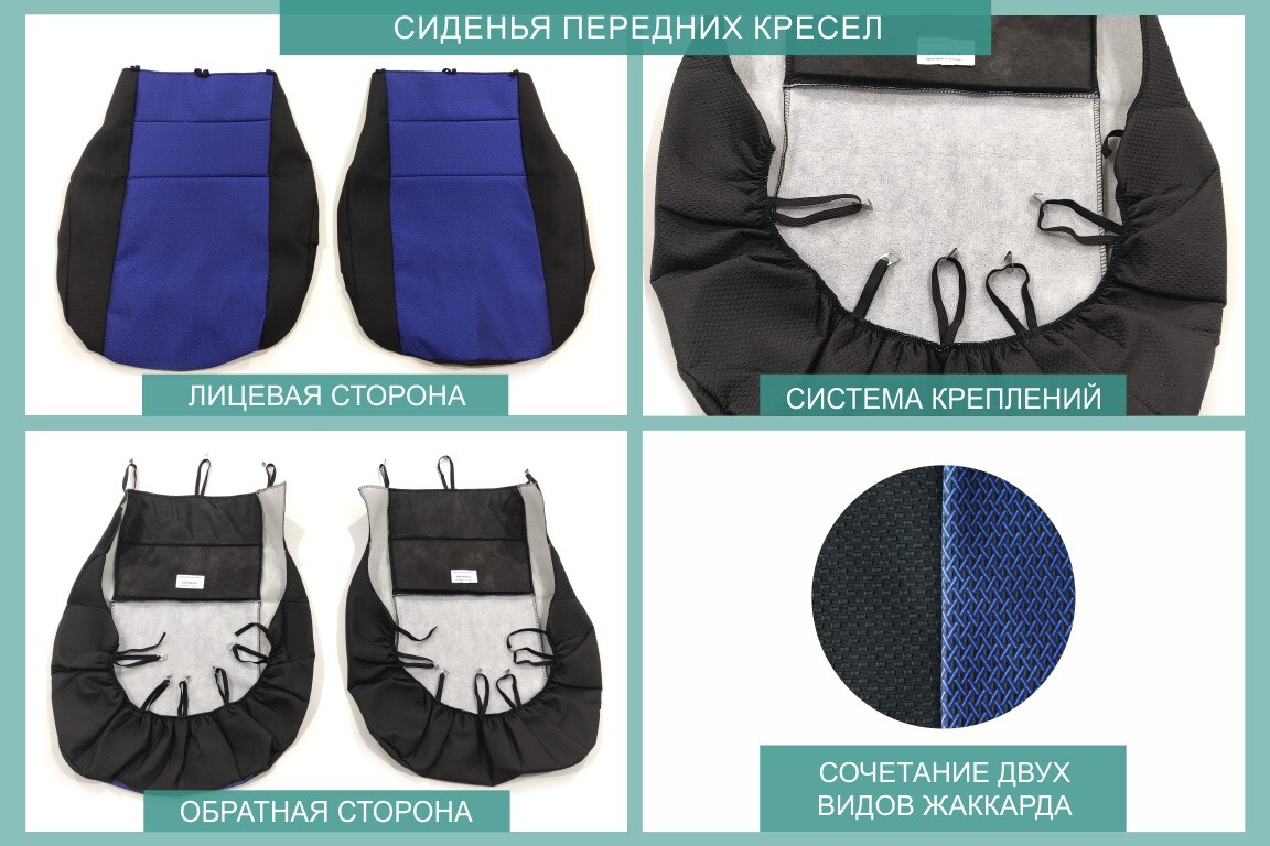 Чехлы на сиденья Lada 2114 /2115, 1997-2013, доп. боковая поддержка, жаккард черный/ синий