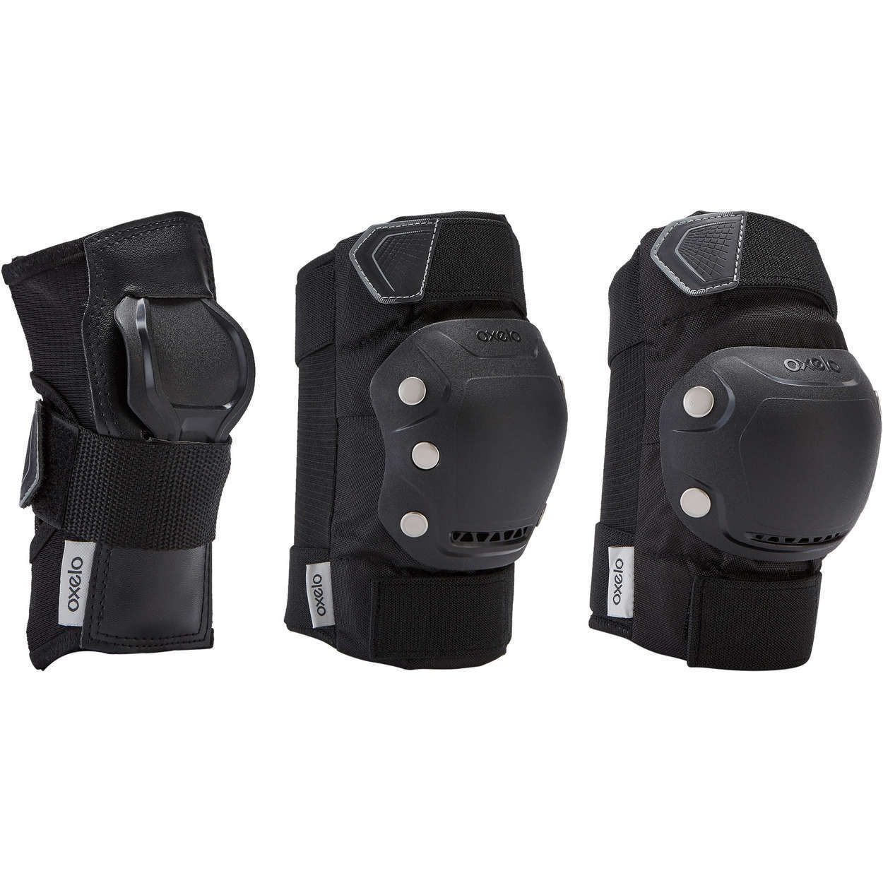 Набор защитной экипировки (3 элем.) д/катания на роликах д/взр. чер.-сер. FIT500 OXELO Х Декатлон