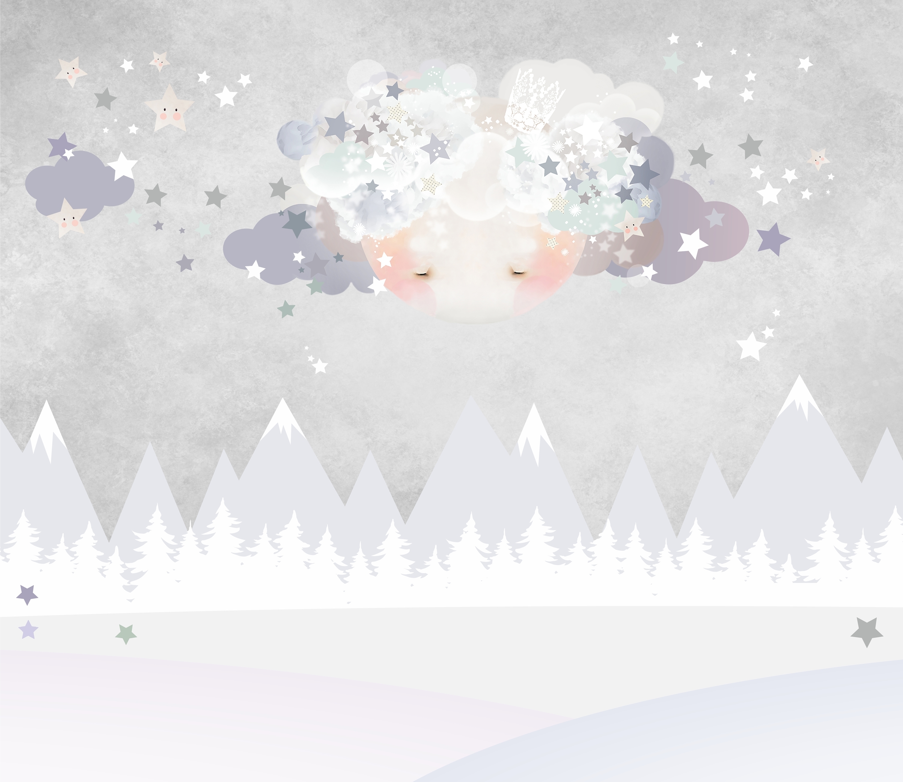 Фотообои Dekor Vinil "Сказочные горы на сером фоне" 300х260 см. /Фотообои для детской