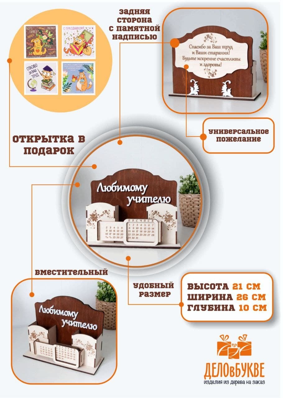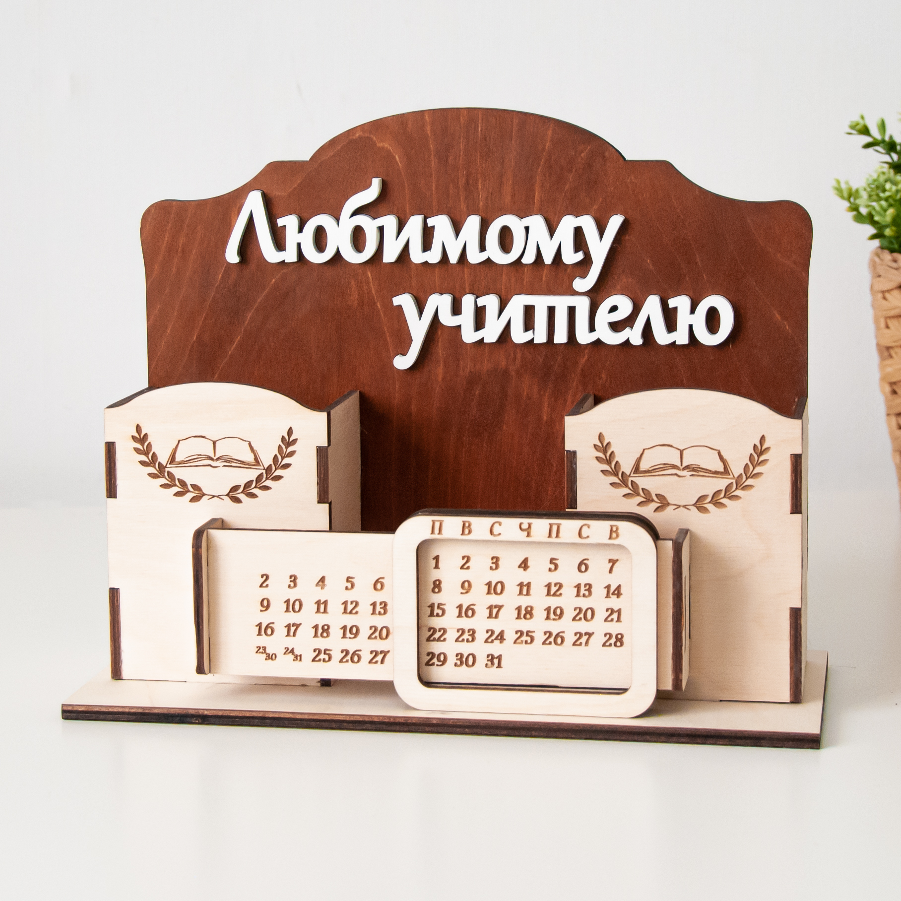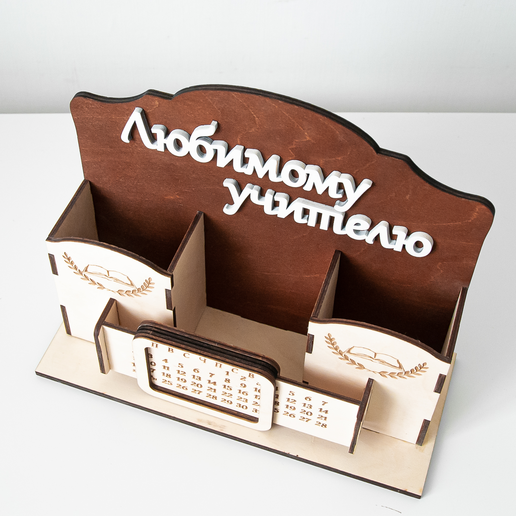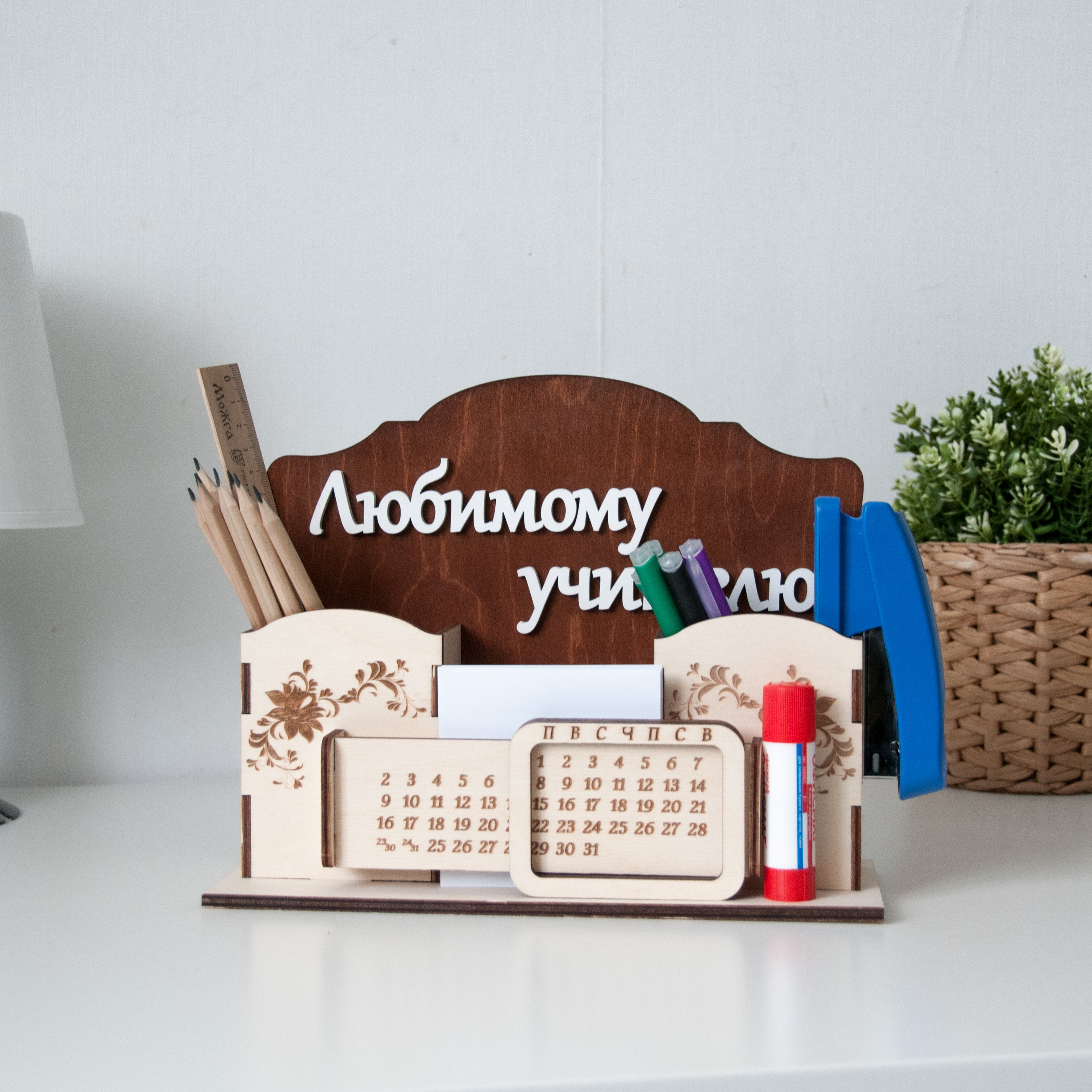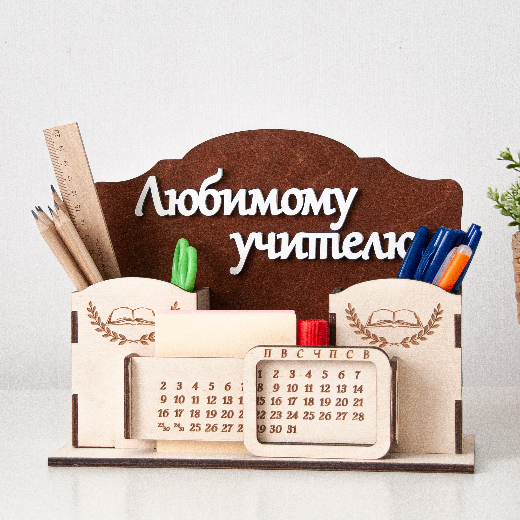 Подставка канцелярская из дерева / настольный органайзер для учителя из дерева / подарок учителю