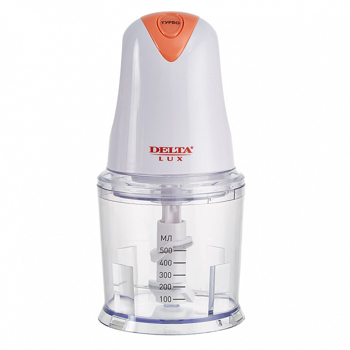 Измельчитель DELTA LUX DL-7418 белый с терракот.: 350Вт, ДВОЙНОЙ НОЖ,чаша 500мл (6)