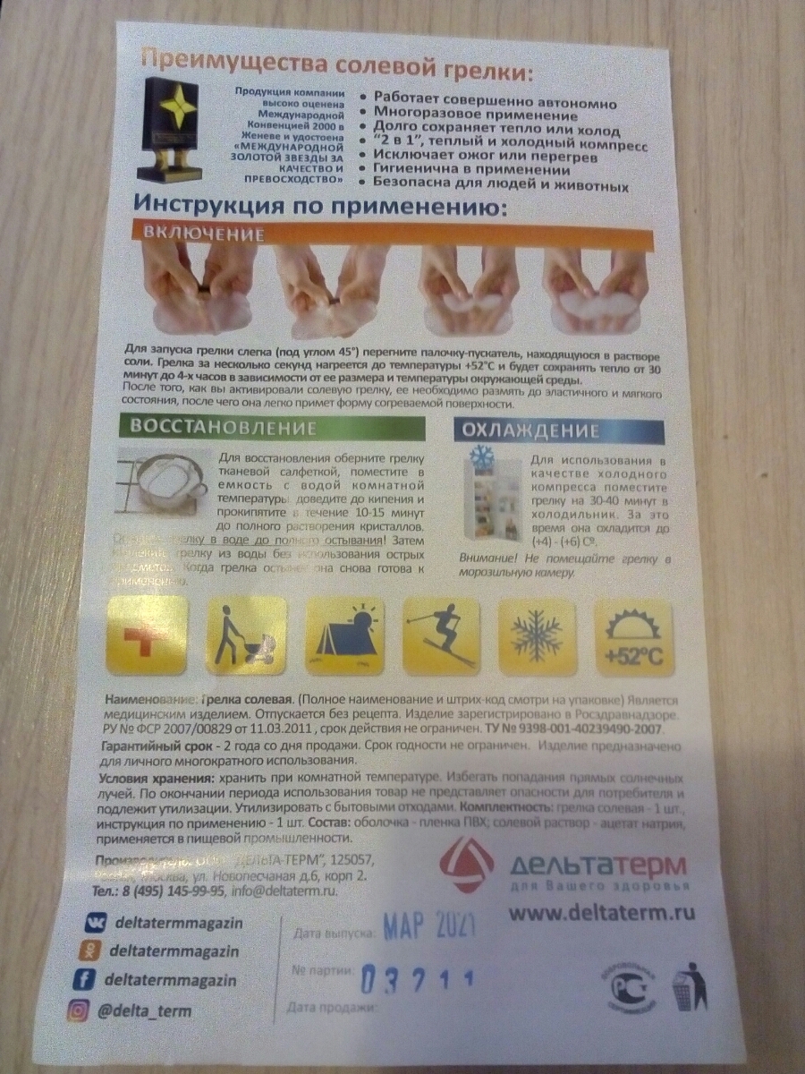 Солевая грелка "Снеговик" Дельта Терм