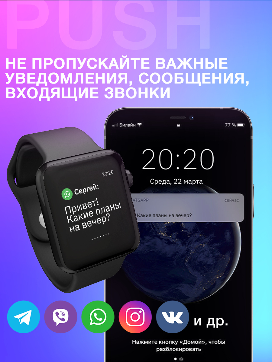 Умные часы demotius Smart Watch 7 series Pro Black / смарт часы мужские, женские, детские, 45 mm, 44mm