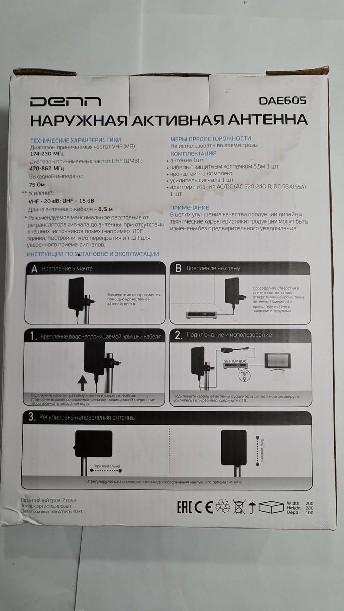 Denn DAE605 уличная ТВ-антенна (активная) Уцененный товар