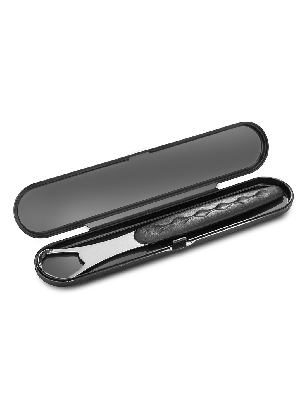 Dentalpik Скребок для языка металлический с чехлом, черный